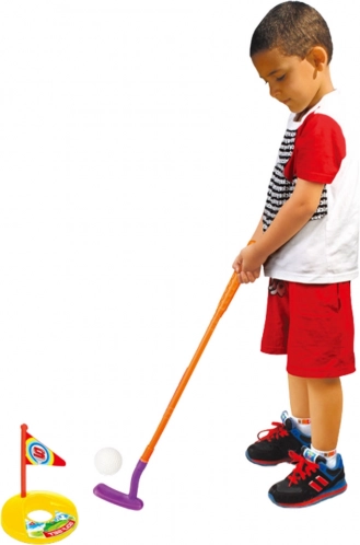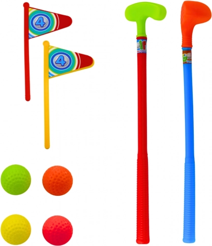 Kompletan set sadrži sve potrebno za početak golf avanture: 3 lagane, šarene golf palice, 4 golf loptice, 2 zastavice s rupom koje se mogu postaviti bilo gdje te mobilna kolica.