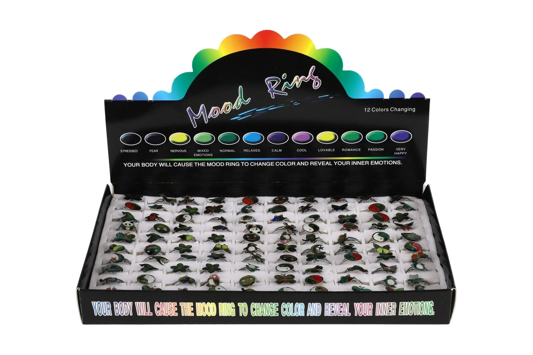 Ovi moderni prstenovi spajaju zaigranost s jednostavnim fizikalnim fenomenom. Termoaktivni sloj trenutačno reagira na promjene tjelesne temperature i stvara zanimljive kolorističke efekte koje djeca obožavaju. Svaki prsten ima podesivi metalni remen, pa se lako prilagođava većini prstiju.
