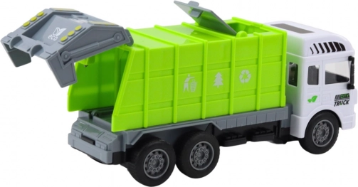 Igračka nudi potpuno upravljanje pomoću daljinskog upravljača – omogućuje vožnju naprijed, natrag i skretanje na obje strane. Ima pomični stražnji i gornji poklopac, što djetetu omogućuje utovar i “istresanje” otpada – baš kao pravi kamioni za smeće. Svjetlosni efekti u kabini pridonose atraktivnosti osobito u sumrak, dajući vozilu jedinstven realizam.