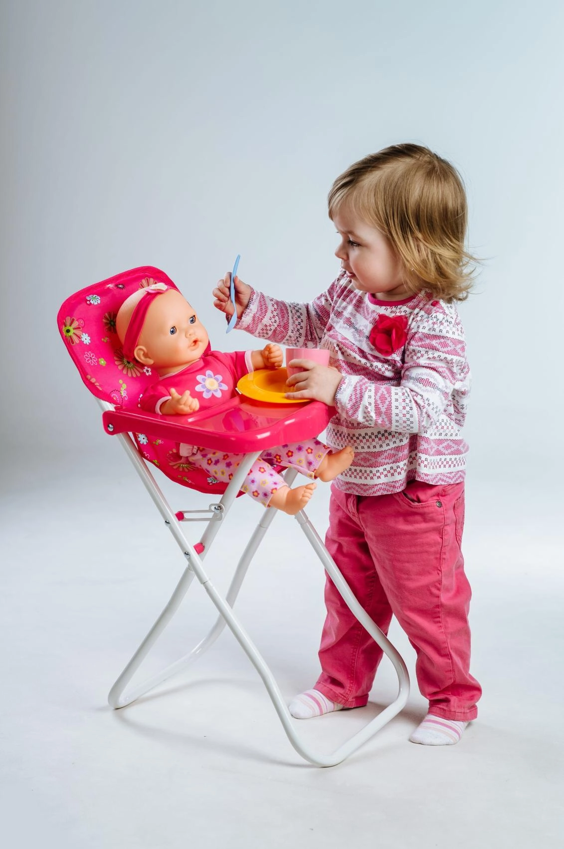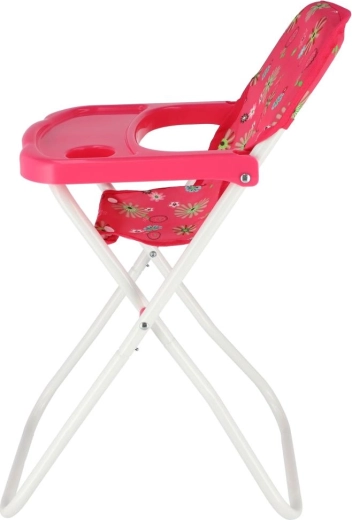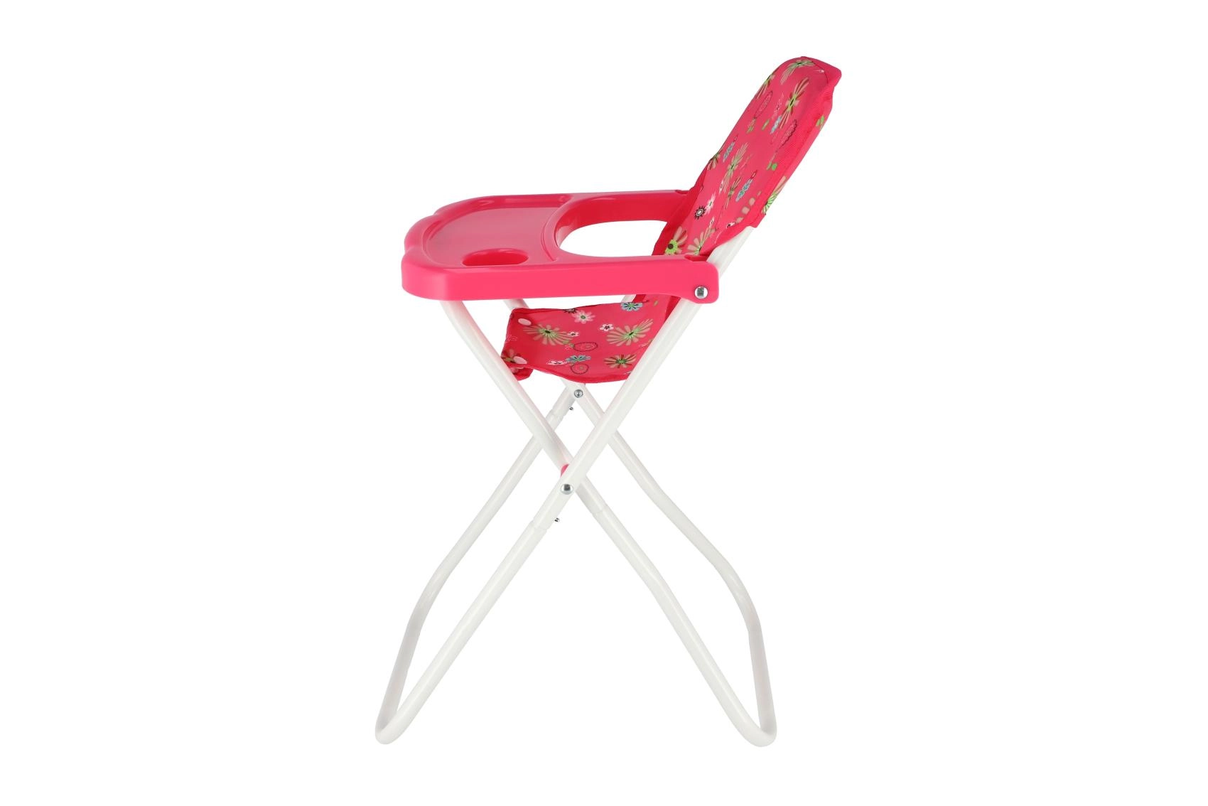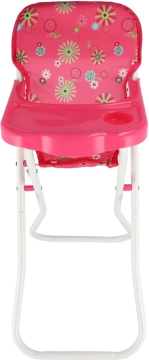 Ova visoka stolica za lutke razveselit će sve male njegovateljice. Nudi udobno sjedenje s cvjetnim presvlakama, praktični plastični pladanj za hranjenje te laganu, ali stabilnu metalnu konstrukciju. Zahvaljujući sklopivom dizajnu lako se prenosi i odlaže.