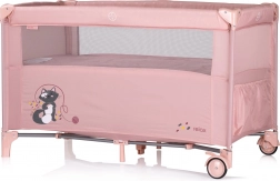 Opremljen je s dva kotačića s kočnicom za jednostavno premještanje. Osim toga, lako se sklapa i rasklapa, što omogućuje brzo pakiranje za put. Paket sadrži sklopivi krevetić, madrac, drugu razinu krevetića i praktičnu torbu za nošenje i pohranu.