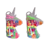 Sve je uredno zapakirano u praktičnoj plastičnoj kutiji u obliku jednoroga, koja sadrži manje odjeljke za pregledno organiziranje gumica prema bojama. Ovaj set je ne samo zabavan, već i razvija dječju kreativnost i finu motoriku.