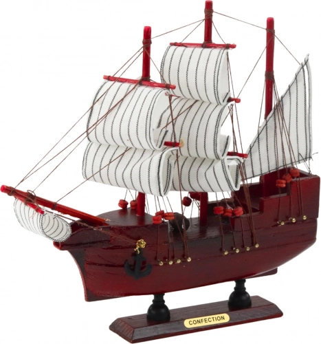 Svjež model trojarobroda donosi eleganciju klasičnog pomorskog plovila iz doba velikih otkrića. Pažljivo je izrađen od drveta i ručno dovršen, što jamči visoku kvalitetu i detaljnu izradu. Cijeli model stoji na drvenom postolju s pločicom i spreman je za dojmljivu prezentaciju.