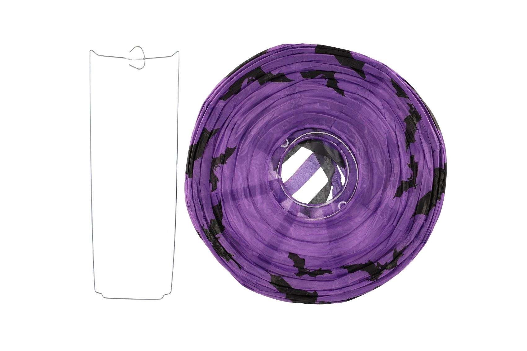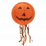 Stvorite jezivo čarobnu atmosferu s okruglim halloween lampionom promjera 30 cm. Lampion je od laganog papira, a zahvaljujući donjim resicama pri vješanju izgleda vrlo efektno. Dostupna su tri izražajna motiva: bundeva (narančasta), šišmiši (ljubičasta) i pauci (bijela).