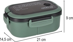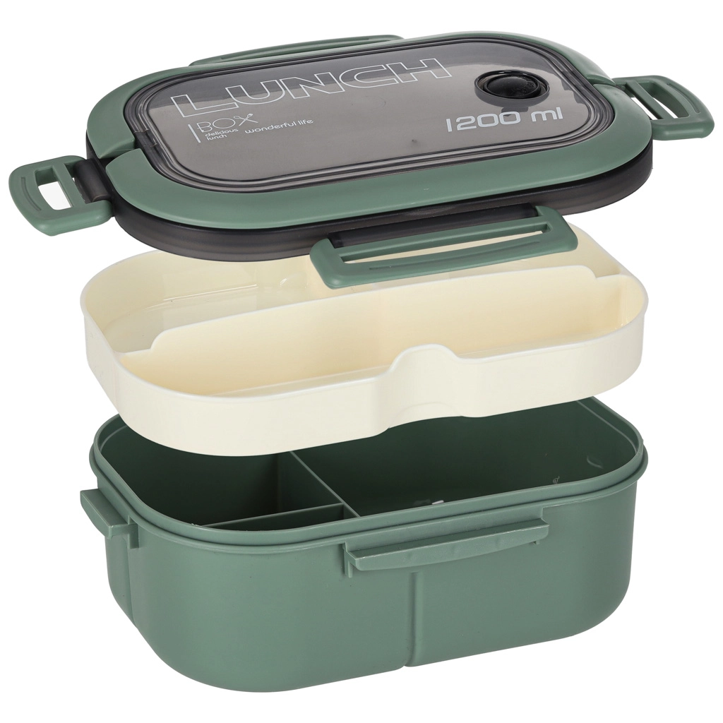 Stilna i funkcionalna lunch kutija u nijansama zelene nudi kapacitet 1200 ml i promišljenu organizaciju prostora za praktično nošenje cijelog ručka. Zahvaljujući izvadivoj razini s 3 pretinca lako ćete držati porcije odvojene, bez miješanja okusa.