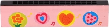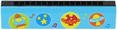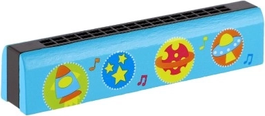 Harmonika je dostupna u više kolorističkih izvedbi s razigranim motivima (srca, životinje, svemir, note), tako da će svako dijete pronaći svoju omiljenu. Kompaktne dimenzije omogućuju lako nošenje na putovanja, k baki i u vrtić.