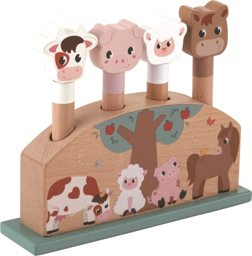 Ova drvena pop-up igra donosi puno smijeha i iznenađenja – kravica, praščić, ovčica i konjić veselo skaču nakon pritiska na oprugu. Zahvaljujući kvalitetnom prirodnom drvu i zemljanim nijansama boja, igračka se lijepo uklapa u svaku dječju sobu.