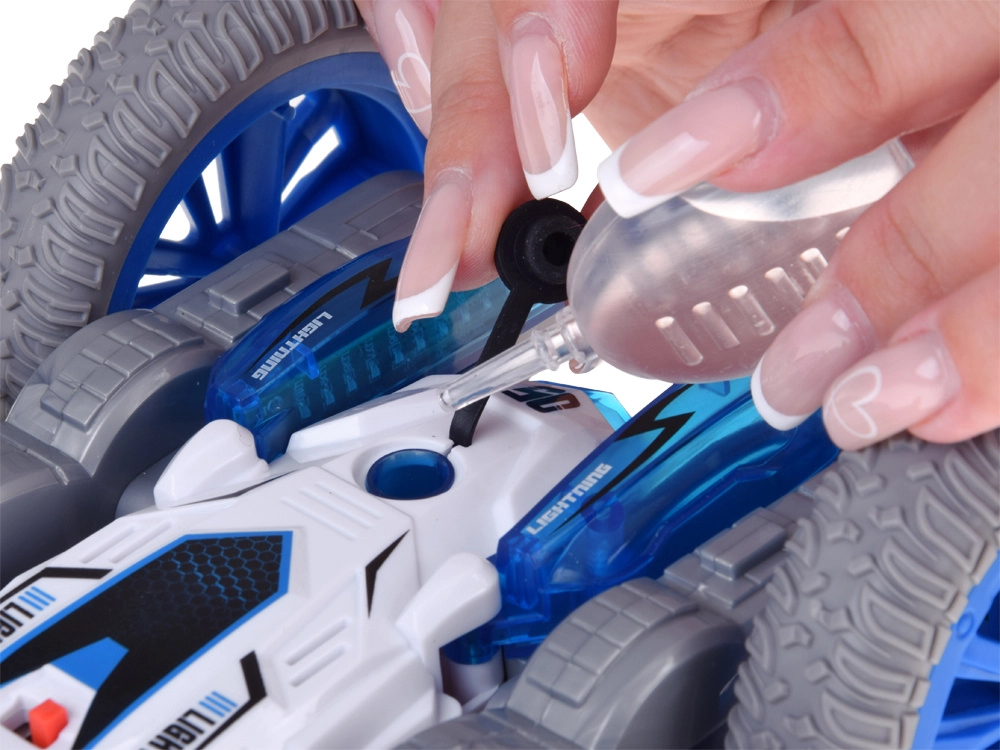 Ovaj kaskaderski RC auto stvoren je za adrenalinsku vožnju kod kuće i na glatkim vanjskim površinama. Zahvaljujući velikim kotačima i okretnoj konstrukciji savladava salta, vožnju po “trbuhu i leđima”, brze promjene smjera i impresivne 360° rotacije. Efekt osvijetljene vodene pare i dvobojne LED diode vožnji daju atraktivan izgled.