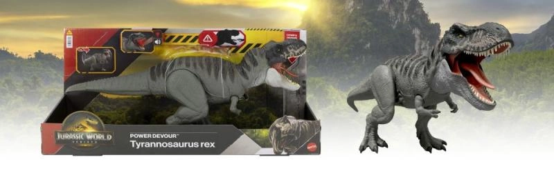 Doživite akcijsku zabavu s legendarnim T‑Rexom iz JURASSIC WORLD-a. Ovaj veliki model od 53 cm nudi neprekidno grizenje, svjetlosne efekte i zastrašujuće rikanje. Jednim pritiskom jezičnog okidača T‑Rex rikne, a držanjem se pokreće divlja sekvenca grizenja sa zvukom i svjetlom. Uz pomoć pokretnog repa mijenja napade iz različitih smjerova. Idealan poklon za djecu od 4 godine i sjajan dodatak digitalnoj kolekciji u aplikaciji Jurassic World Play.