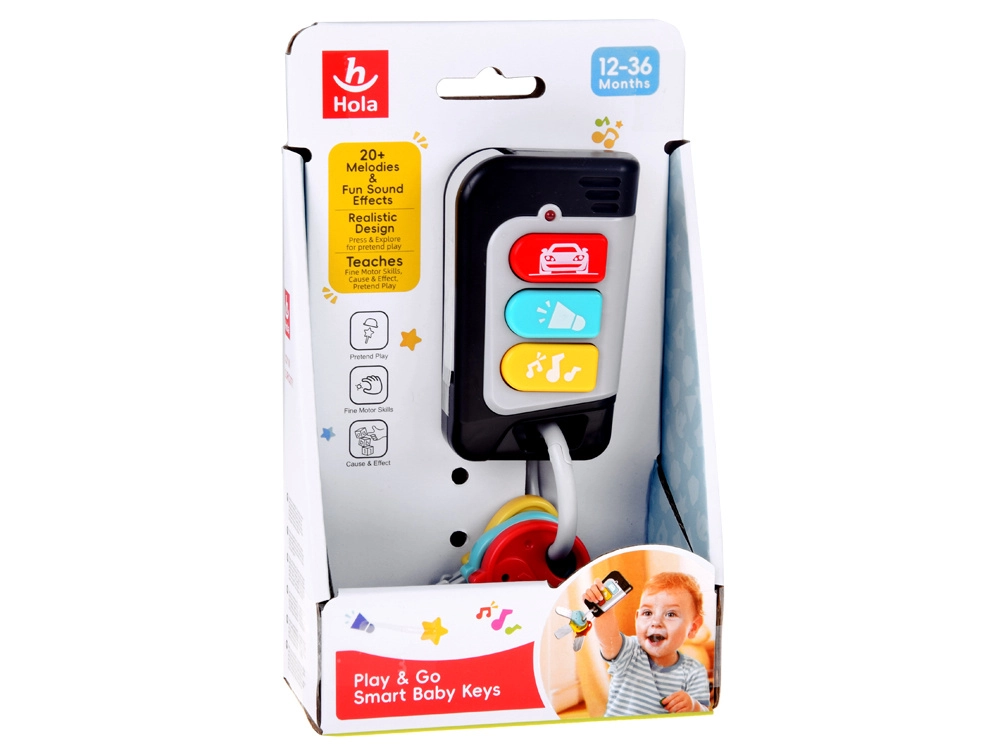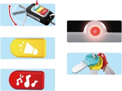 Interaktivni ključevi s daljinskim upravljanjem stvoreni su za male ljubitelje automobila. Ergonomski oblik pristaje dječjoj ručici, a šareni elementi motiviraju na istraživanje. Djeca mogu reproducirati otključavanje auta, paljenje motora, vožnju, kočenje i vožnju unatrag, zatrubiti ili pustiti vesele melodije koje potiču razigranost.