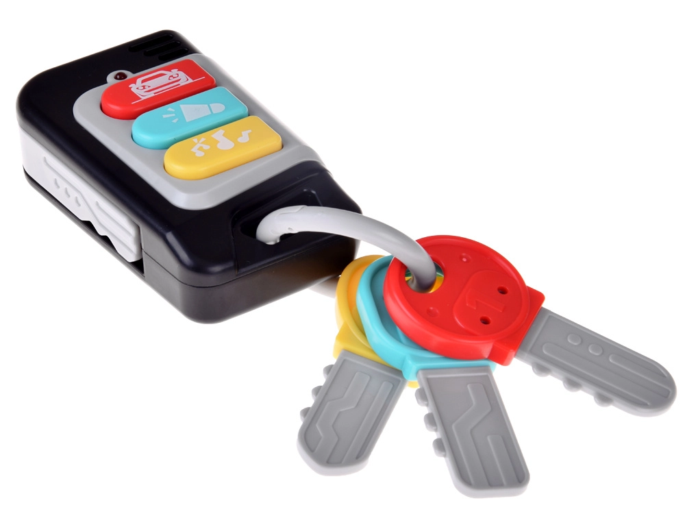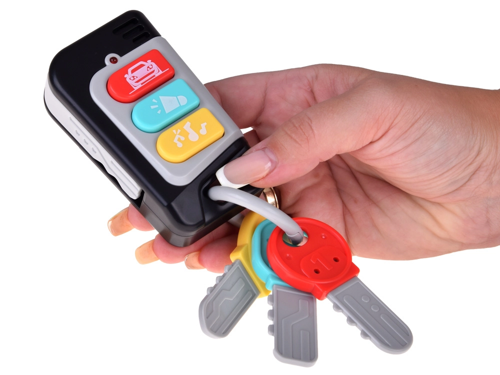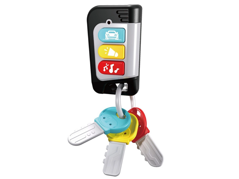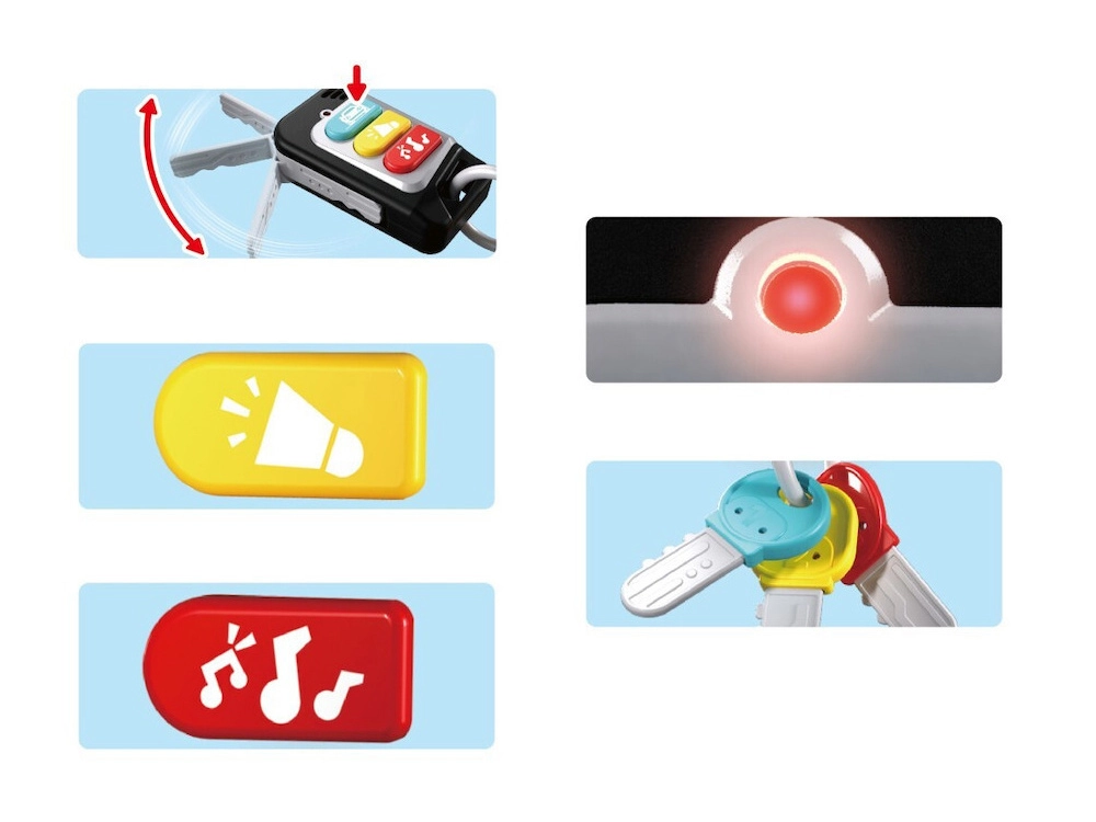 Dio seta je i skup od tri pričvršćena ključa u bojama usklađenim s tipkama na upravljaču te jedan izvlačni ključ koji podsjeća na pravi auto ključ. Različiti oblici ključeva razvijaju dodir, razlikovanje oblika i pažnju. Igračka izvrsno potiče imitativnu igru, samostalnost i koordinaciju oko–ruka.