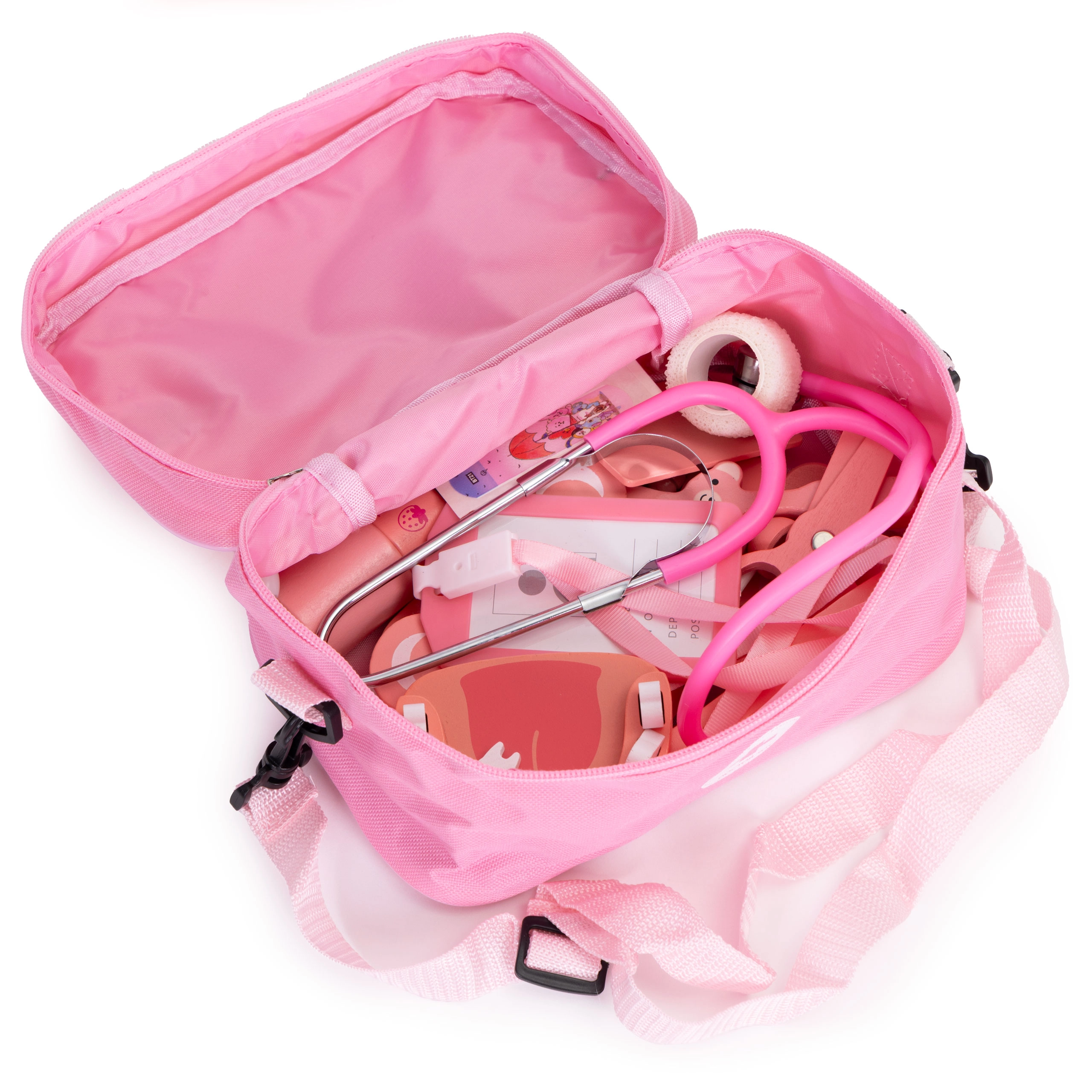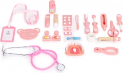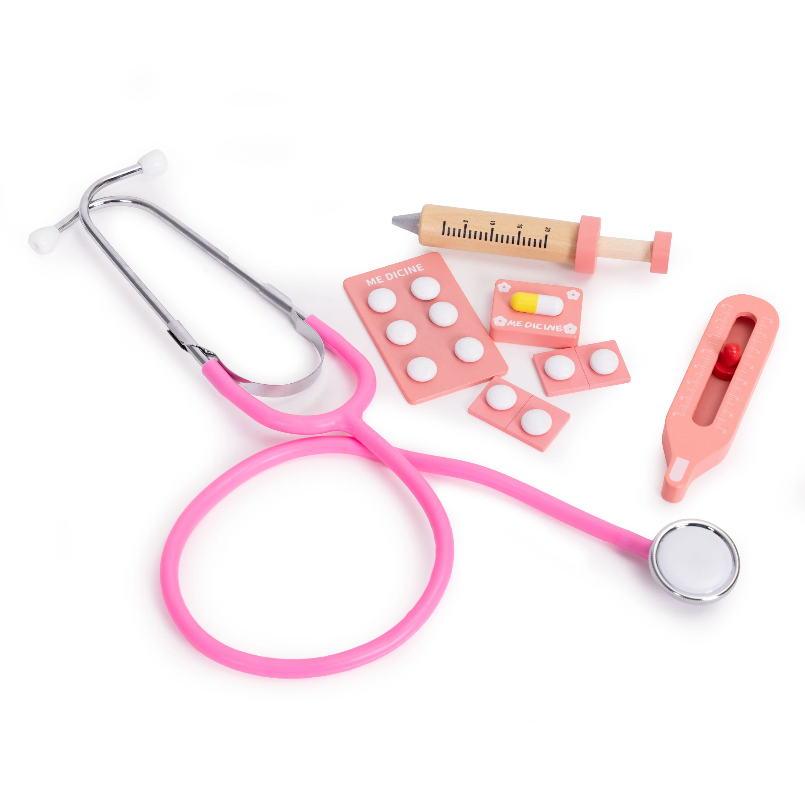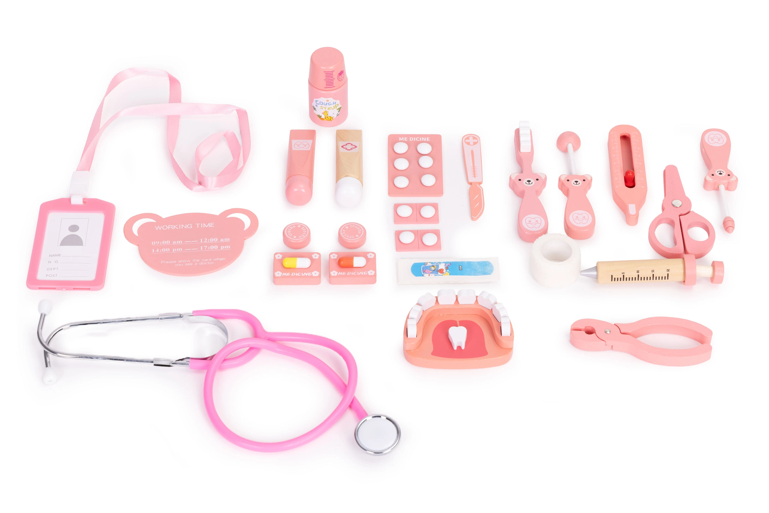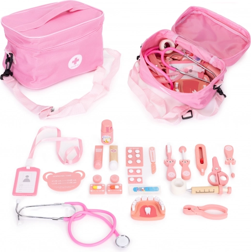 Ovaj sveobuhvatni drveni liječnički set idealan je za djecu od 3 godine. Zahvaljujući bogatoj opremi – od stetoskopа preko toplomjera do zubnog modela s izvadivim zubima – djeca kroz igru upoznaju osnovne medicinske instrumente. Lagana tekstilna torba s patentnim zatvaračem i remenom omogućuje jednostavno spremanje i prenošenje.