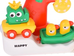 U kompletu su krokodil u autiću, brodić s dva pačića i posudica za lijevanje. Plutajući elementi potiču maštu i produžuju razigrano vrijeme u kadi.