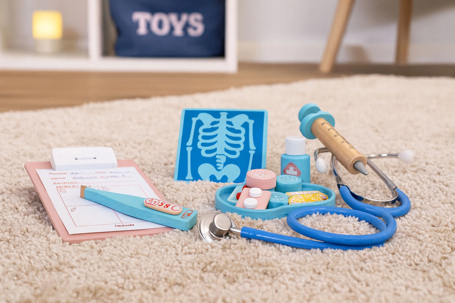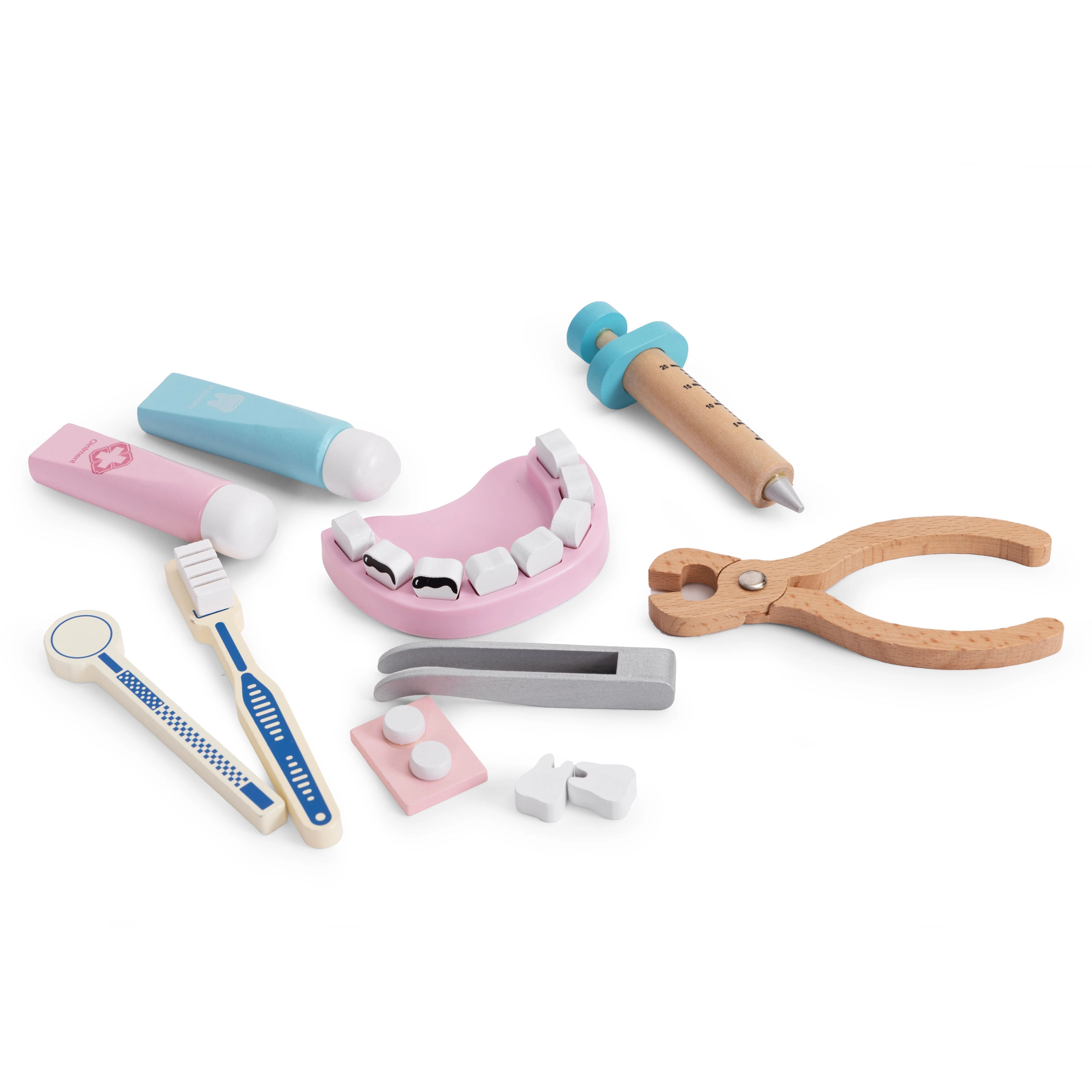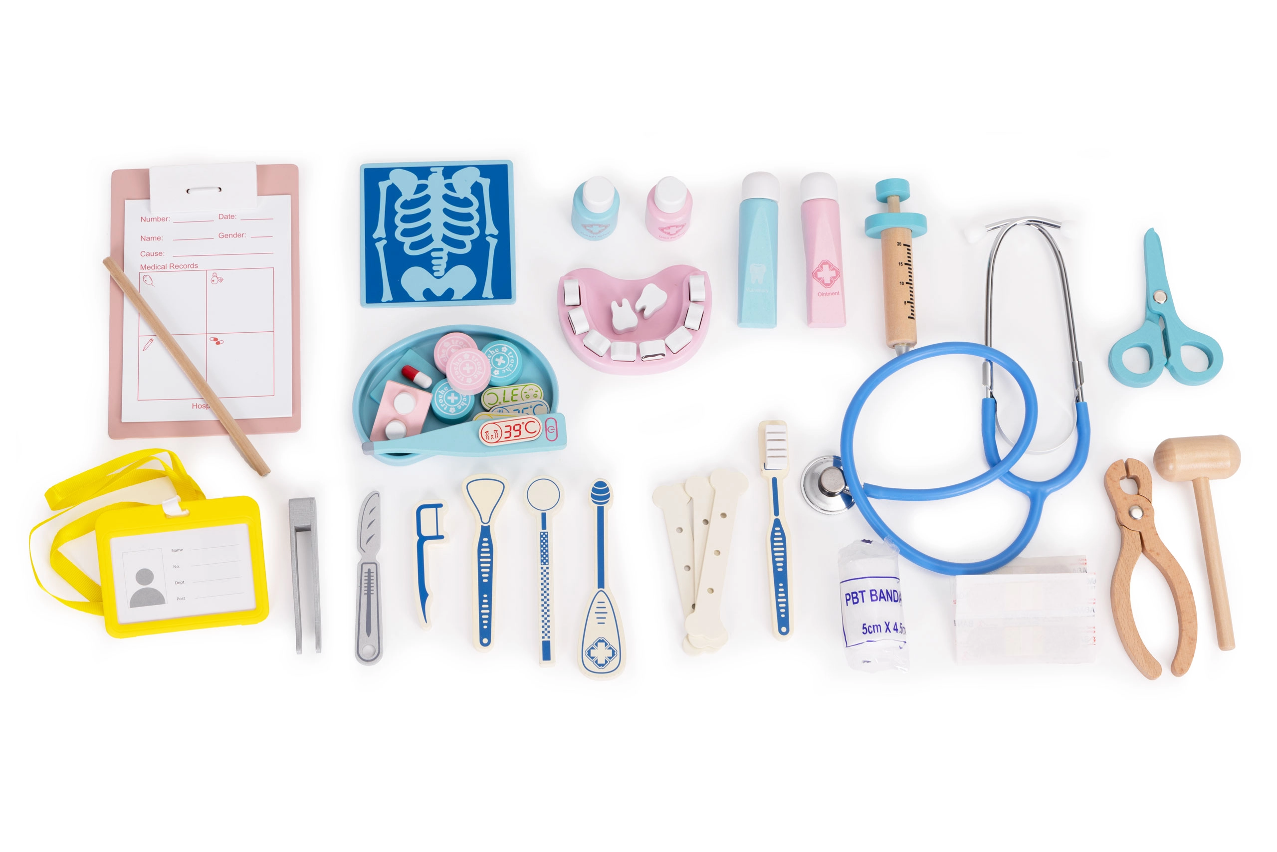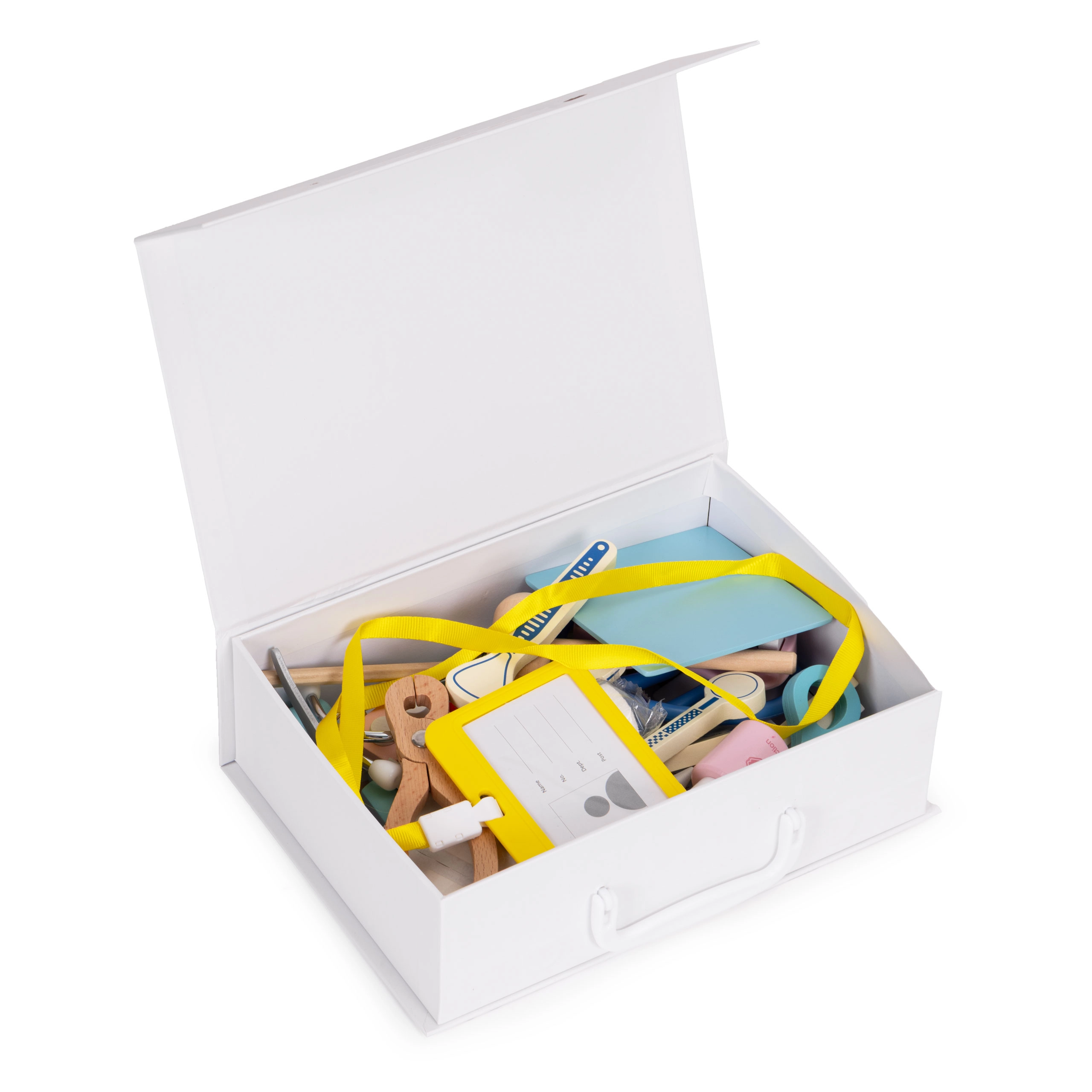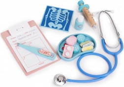 Dječji doktorski kofer donosi sve za male liječnike i zubare: stetoskop, toplomjer, injekciju, zavoj, ali i zubno zrcalo, umjetnu čeljust s izvadivim zubima i druge dodatke. Set je idealan za igru kod kuće i u vrtiću te pomaže smanjiti strah od posjeta liječniku ili zubaru.
