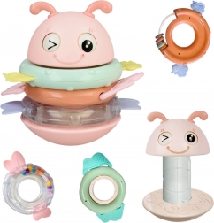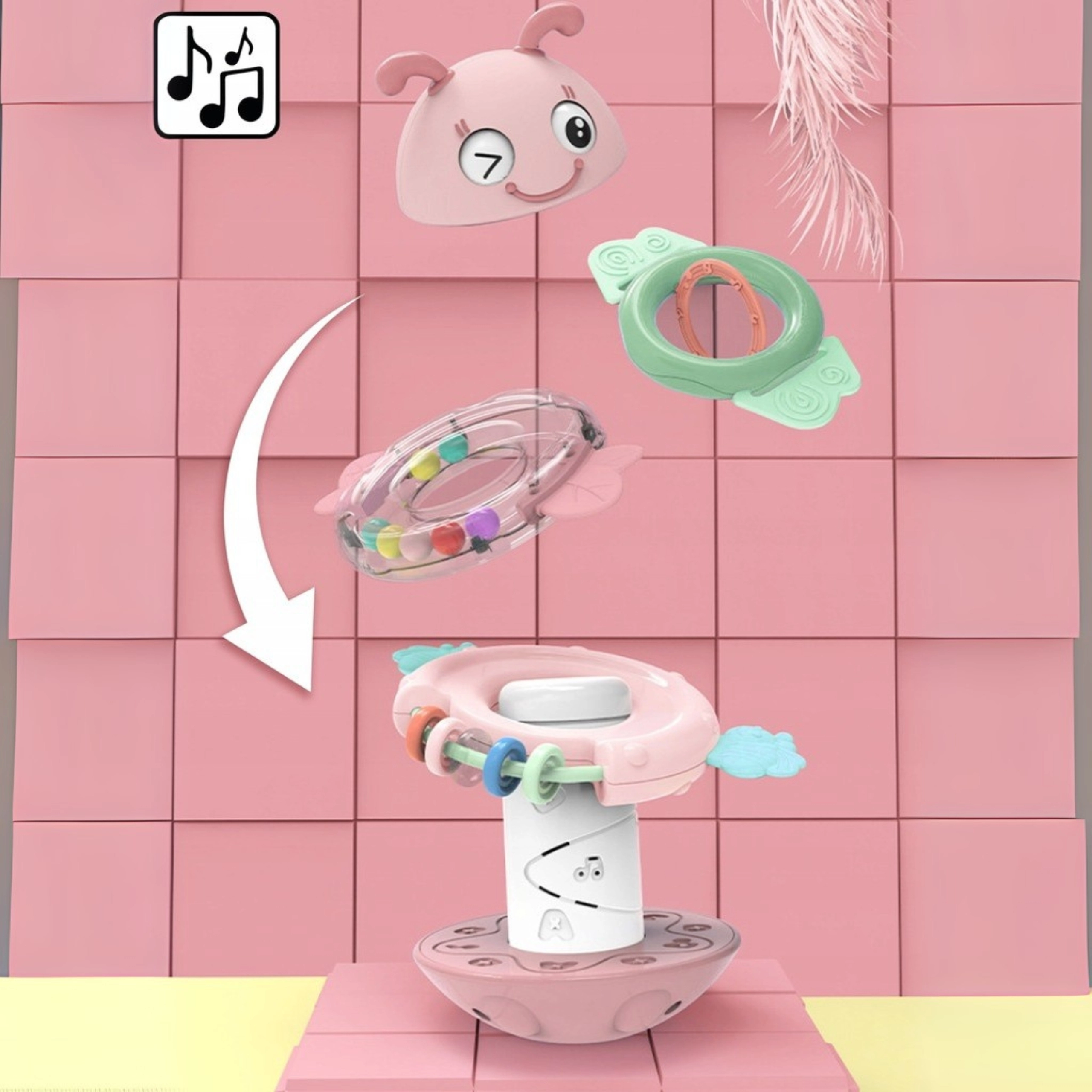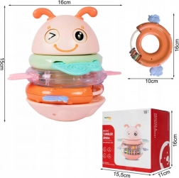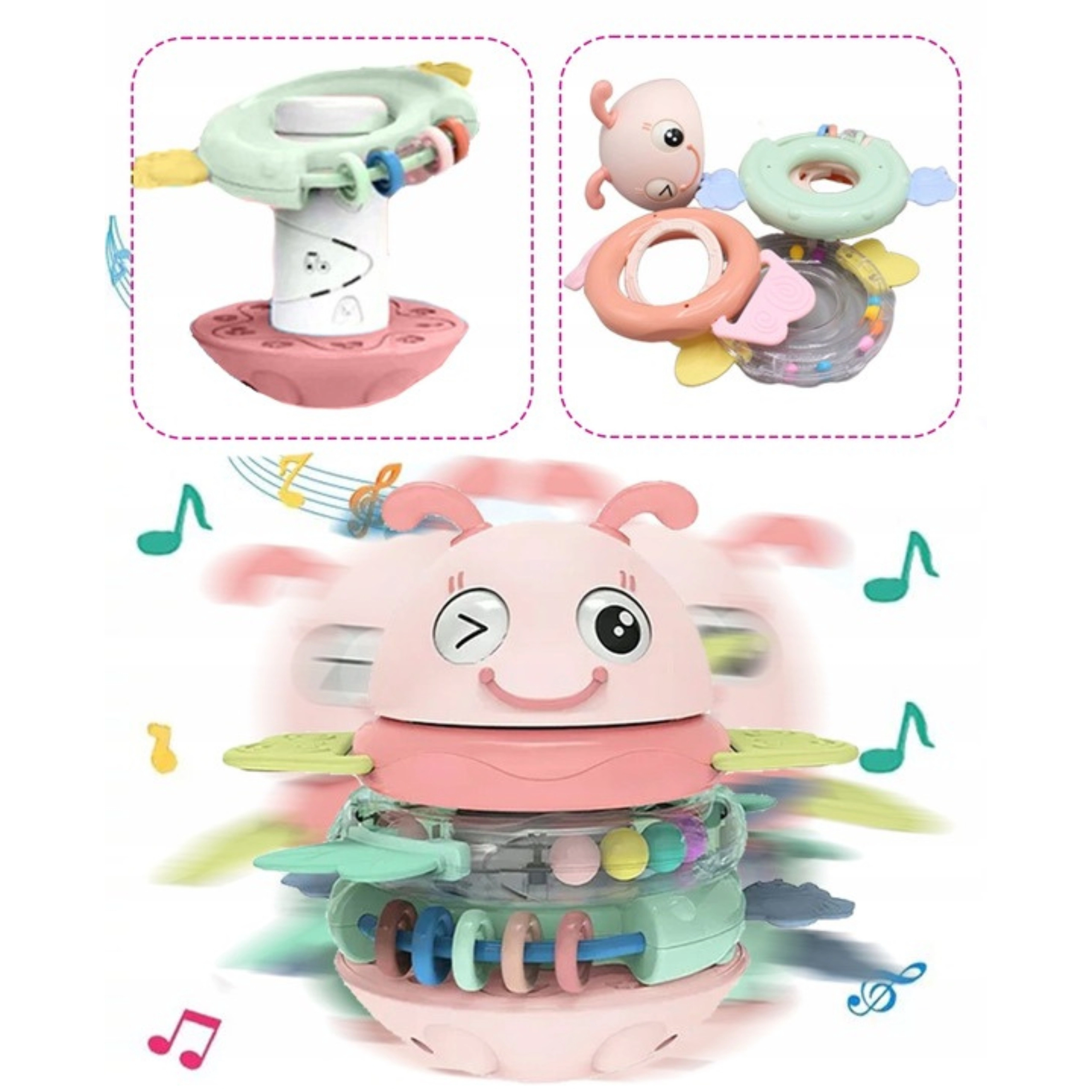 Tražite igračku za bebu koja će privući pažnju, umiriti desni i istodobno poticati razvoj? Ova ružičasta pčelica WOOPIE je multifunkcionalna osjetilna igračka prikladna od prvih mjeseci. Prsteni se mogu koristiti zasebno kao grizala i zvečkice, ili se mogu postaviti na klin – tada igračka pušta pjesmicu ili zabavan zvuk. Stabilna, zaobljena baza nježno se njiše i motivira dijete na ponovno istraživanje.
