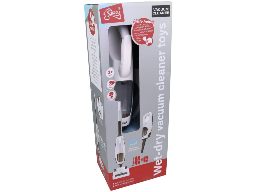 Lagana i izdržljiva konstrukcija od plastičnog materijala prilagođena je dječjim rukama. Usisavač se napaja s 3× AA 1,5 V baterije (nisu uključene u pakiranje) i prikladan je za djecu od 3 godine.