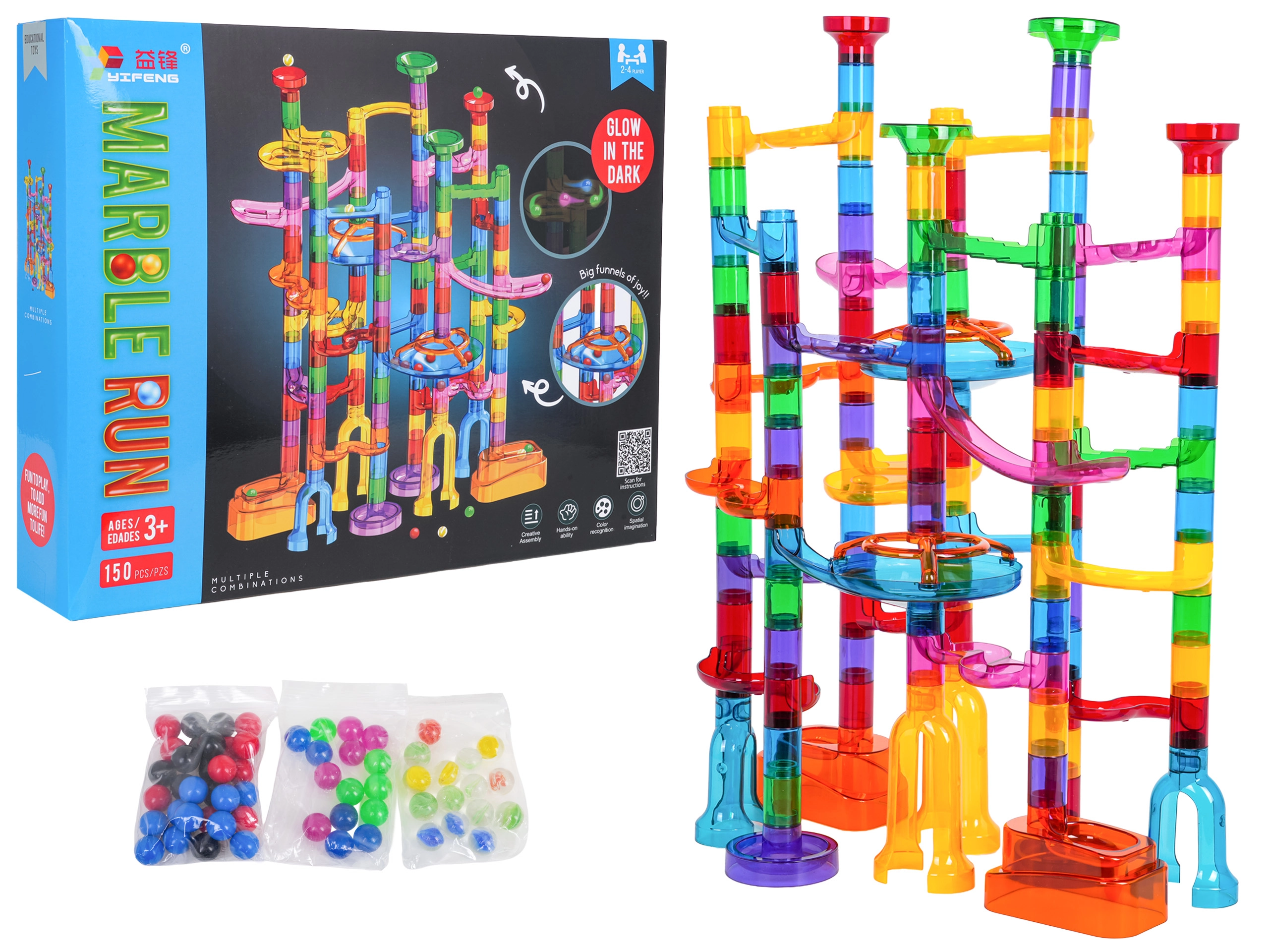 Sastavite stabilnu i šarenu građevinu prema vlastitoj mašti i pustite kuglice da jure kroz spirale, zavoje i tunele. Svjetleće kuglice pretvaraju igru u mraku u čarobno iskustvo, a djeca će s veseljem isprobavati nove rute i rekorde.