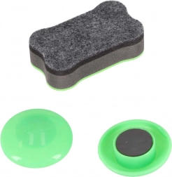 Dvije tekstilske košare održavaju red. U pakiranju ćete pronaći krede, voštane bojice, 3 magnetska markera s gumicom, spužvicu za brisanje, magnete te set slova i brojki.