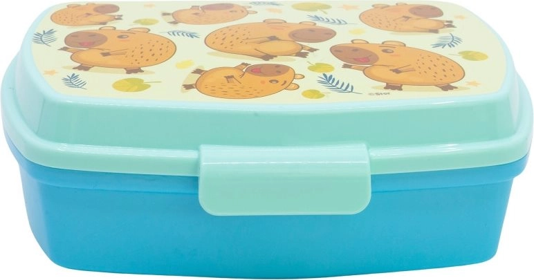 Stilna i praktična kutija za užinu za djecu za školu, igralište i izlete. Izrađena od izdržljivog materijala, sadrži atraktivan motiv kapibare na poklopcu i ne sadrži BPA. Odlično štiti hranu od oštećenja i sitnice od gubitka.