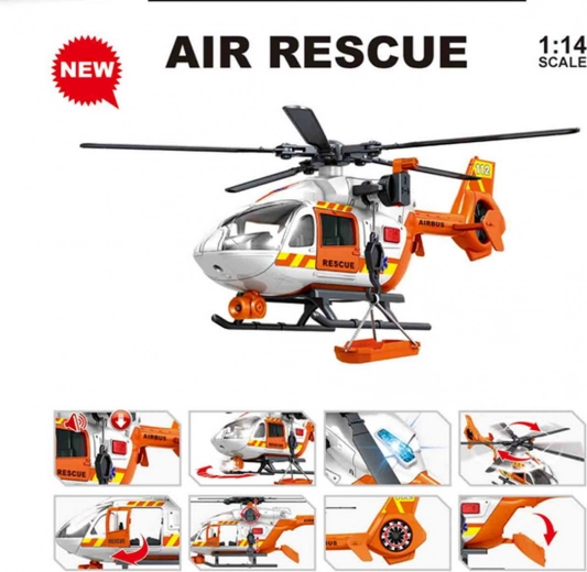 - Interaktivni efekti: LED svjetla i realistični zvukovi spasilačkog helikoptera.