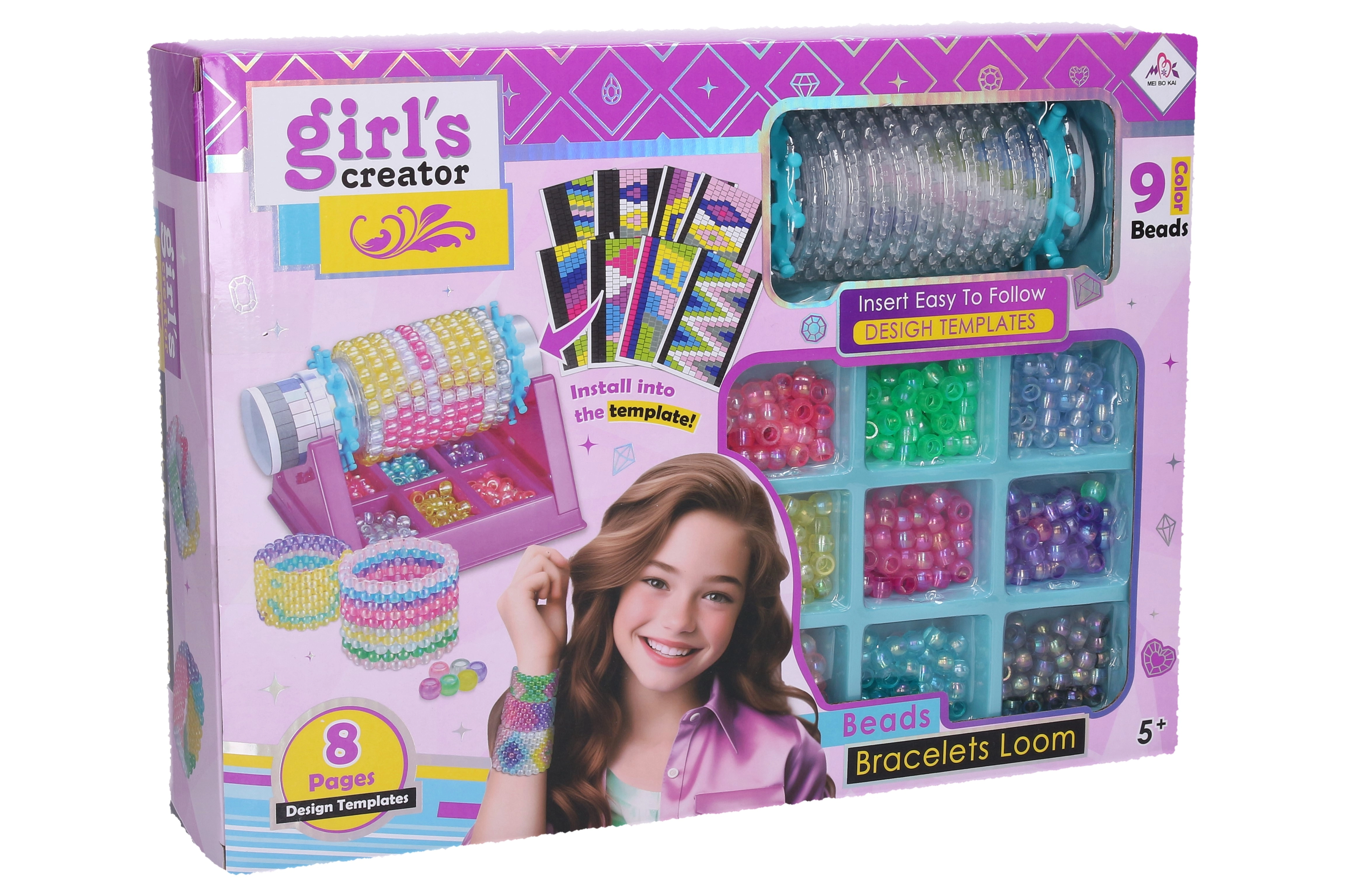 Ovaj kompletan set idealan je za početnike i iskusne kreativce. Zahvaljujući navlakaču, izrada narukvica ide brzo od ruke, a šablone će vam pomoći stvarati simetrične i stilske uzorke. Šarene perlice omogućuju usklađivanje narukvica s odjećom ili darivanje kao osoban poklon.