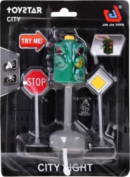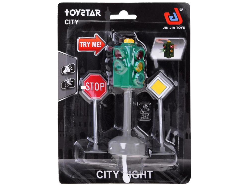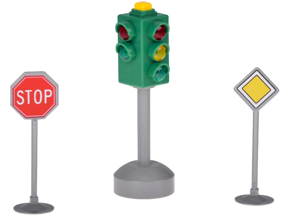 Ovaj realistični semaforski set unosi red i zabavu u dječju igru. Semafor ima crveno, žuto i zeleno svjetlo te prateće zvučne efekte, zahvaljujući kojima djeca shvaćaju kada je pravo vrijeme stati, pričekati i krenuti. U pakiranju se nalaze i 2 prometna znaka – STOP i Pusti prioritet, koji obogaćuju scenarije igre i potiču sigurne navike.