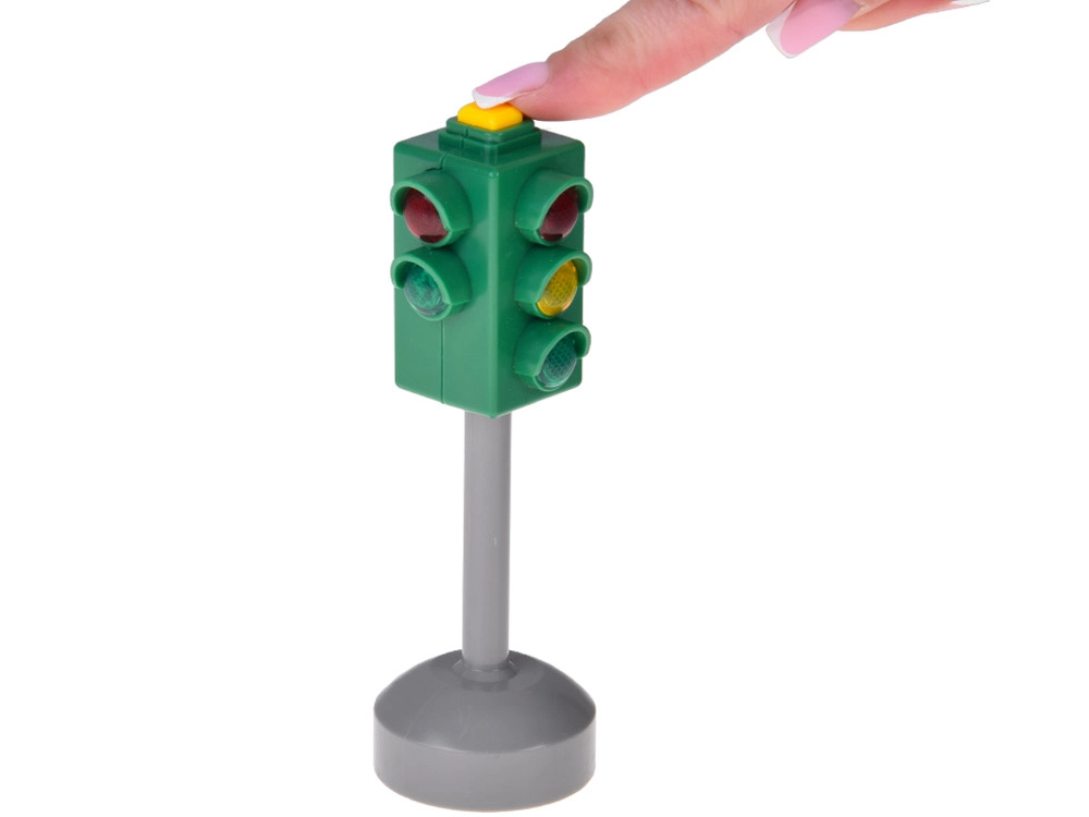 Semafor s tri boje svjetla (crvena, žuta, zelena) i zvukom simulira stvarni promet. Odlično za učenje sigurnog prelaska i vožnje.