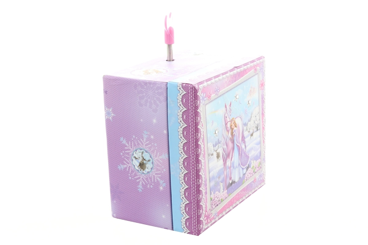 Nakon navijanja ključa jednorog se u unutrašnjosti zavrti i zaori se ugodna melodija koja stvara čarobnu atmosferu.