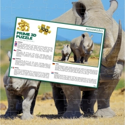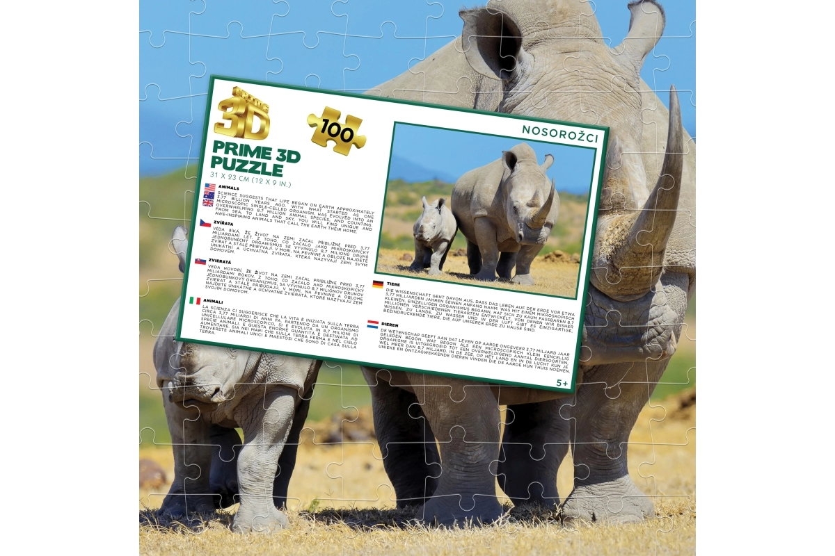 Ove 3D puzzle s nosorozi odličan su izbor za djecu koja vole životinje i uživaju u slaganju. Zahvaljujući 100 dijelova pružaju odgovarajući izazov i zadovoljstvo pri slaganju, a gotova slika dimenzija 31 × 23 cm bit će lijepa dekoracija dječje sobe.