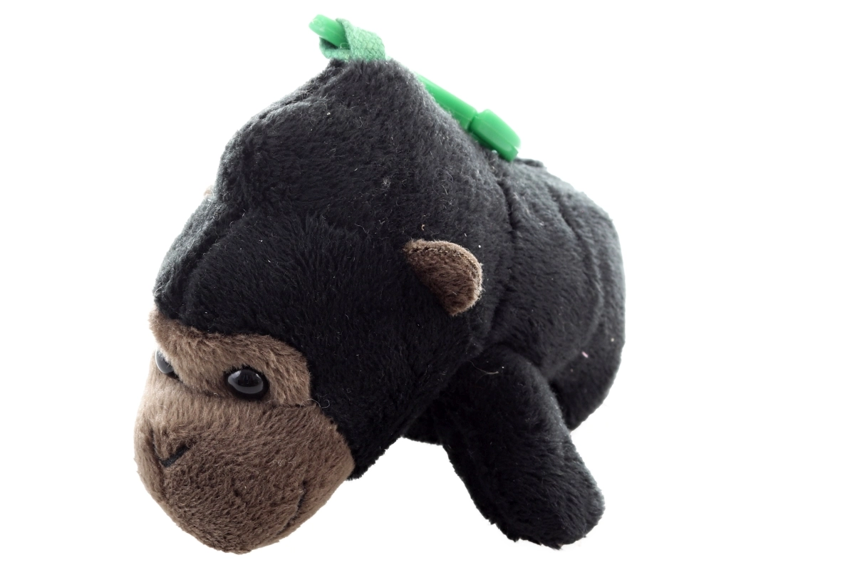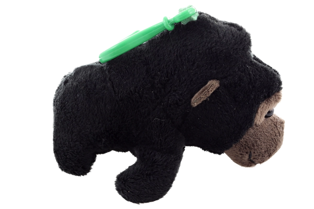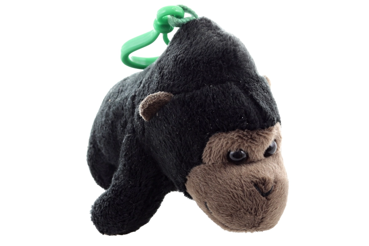 Ova moderna plišana gorila sjajan je dodatak za svakodnevno nošenje. Nježna crna dlaka s smeđim licem i izražajnim plastičnim očima izgleda preslatko i mami na maženje. Zelena kopča omogućuje brzo i čvrsto pričvršćivanje na ključeve, aktovku ili patentni zatvarač ruksaka.