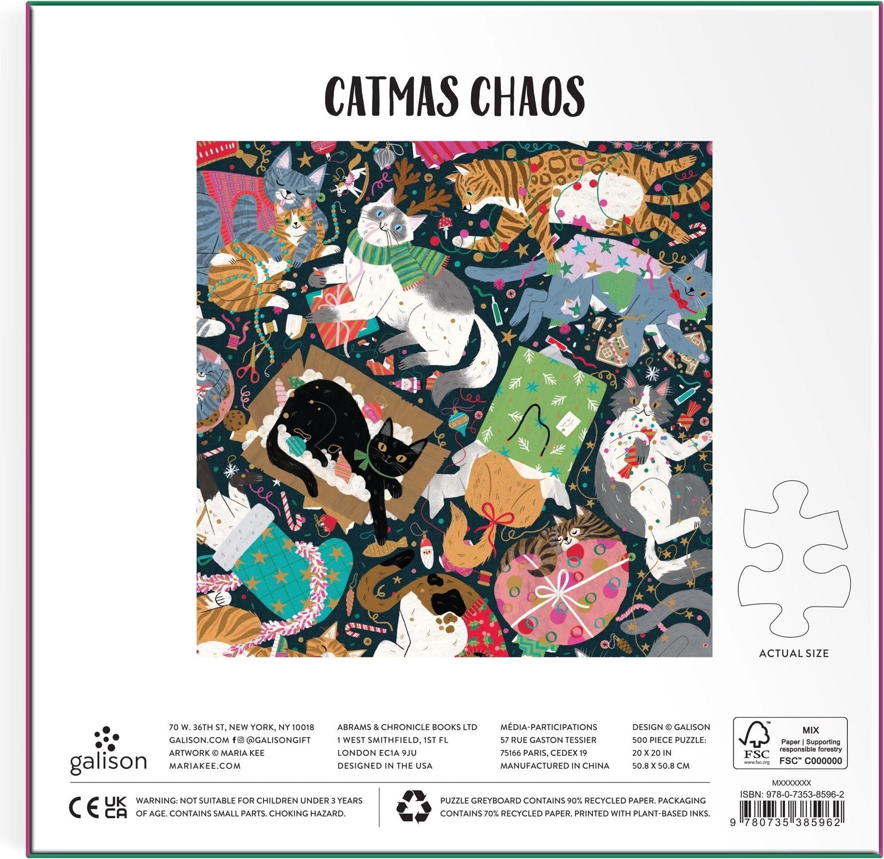 Uživajte u zabavnom slaganju s elegantnim metalnim efektima: kvadratne puzzle s motivom mačkastog božićnog kaosa nude 500 dijelova, kvalitetnu izradu i predložak motiva u pakiranju. Završna slika ima dimenzije 50,8 × 50,8 cm i odlično pristaje kao dekoracija ili dar za ljubitelje mačaka i Božića.