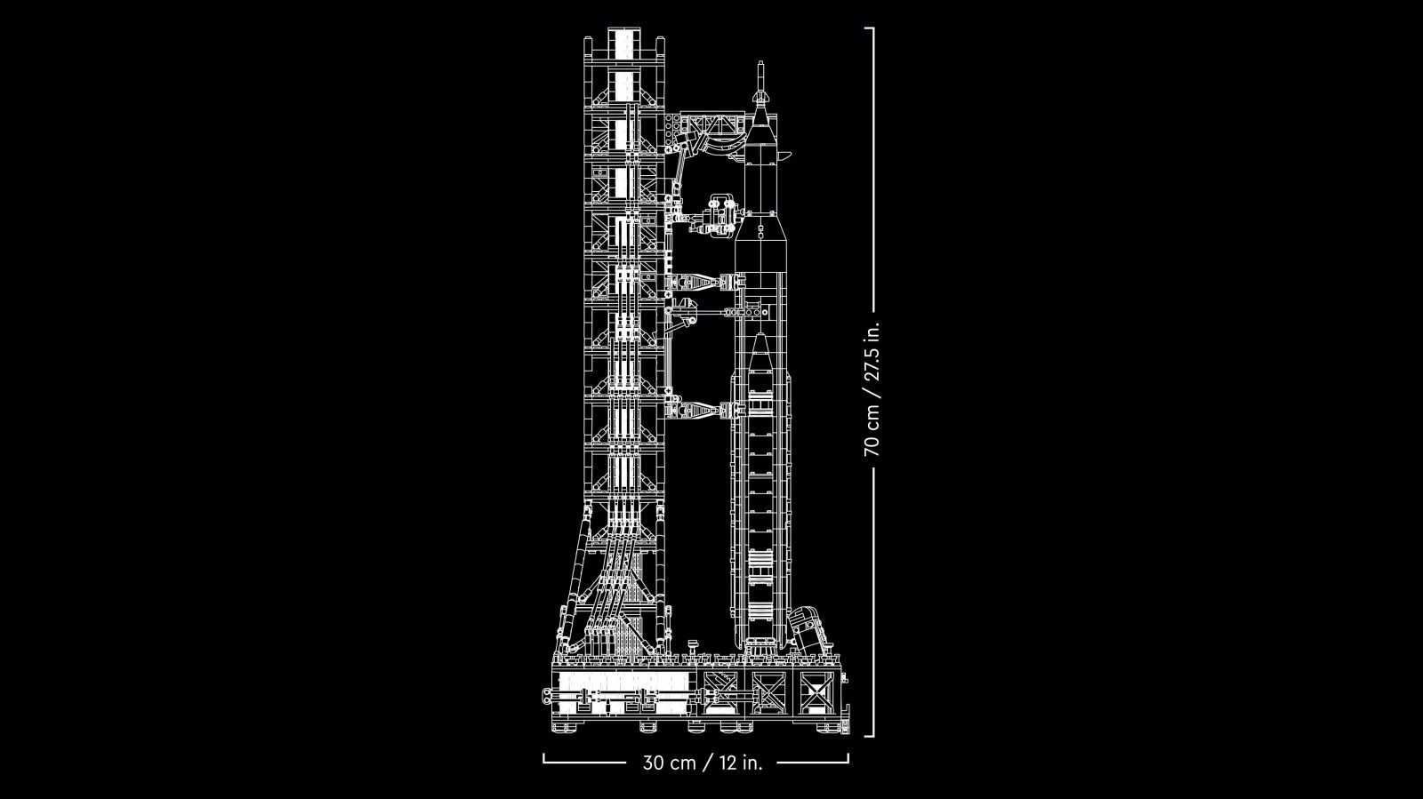 Kula s izvlačnim vodilicama, potpornjima i mostom za posadu daje modelu autentičan izgled pravog NASA-inog predlansirnog postrojenja.
