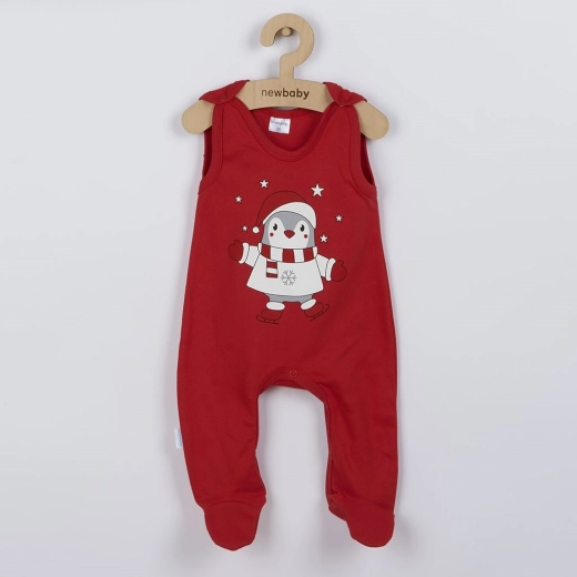 Preslatke bebine benkice od 100% pamuka u intenzivnoj crvenoj boji s veselim motivom pingvina. Praktično kopčanje na drukere na naramenicama i između nožica olakšava oblačenje i prematanje. Univerzalne za djevojčice i dječake, idealan zimski komad, ne samo uz božićno drvce.