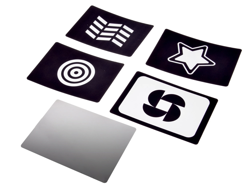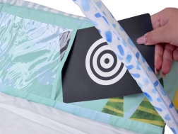 Visok kontrast, raznolike teksture, šuškavi i zvečkavi elementi potiču vid, sluh i dodir. Zrcalce i kartice motiviraju bebu na promatranje i koncentraciju.