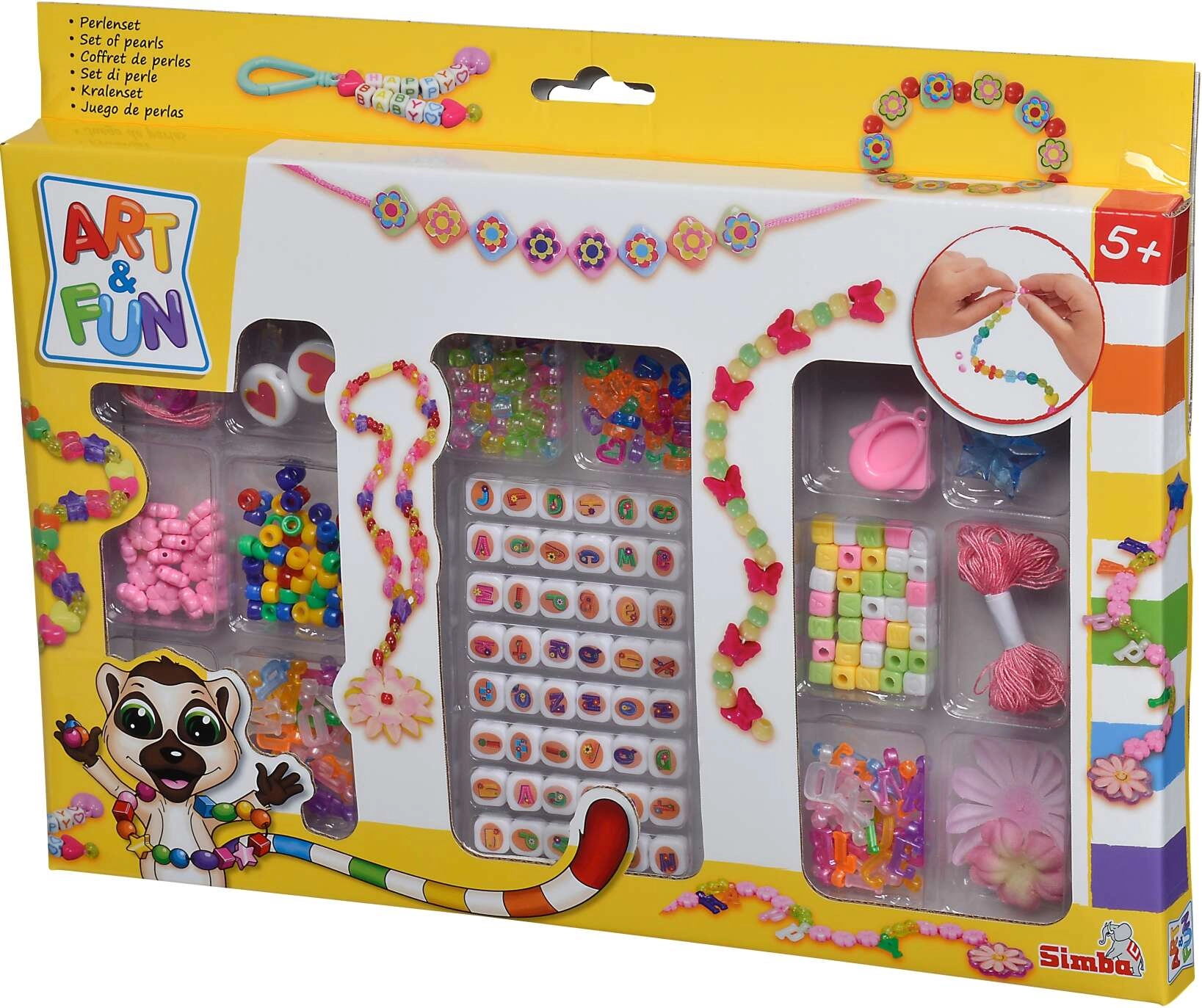 Otkrijte kreativni svijet s dječjim setom za izradu nakita SIMBA ART & FUN. U pakiranju se nalaze šarene perlice, kockice s slovima, špaga i privjesci za izradu originalnih narukvica i ogrlica. Izvrsno za razvoj fine motorike, kreativnosti i osjećaja za estetiku kod djece od 5 godina.