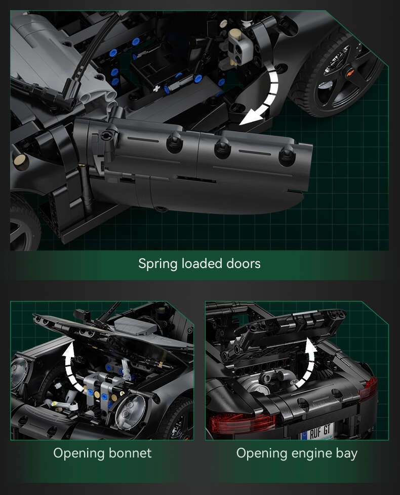 Otvarajuća vrata, poklopac motora i prtljažnik, funkcionalno upravljanje i radni ovjes daju modelu RUF GT realističan karakter i sjajno iskustvo igre i izlaganja.