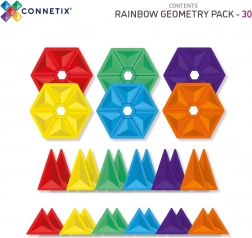 Set sadrži 6 šesterokuta, 12 jednakostraničnih trokuta, 12 jednakokračnih trokuta i inspirativnu brošuru s idejama. Prozirni, šareni dijelovi od izdržljivog ABS-a s neodimijskim magnetima pouzdano se spajaju sa svih strana i tvore čvrste konstrukcije – od tornjeva i mostova do kaleidoskopskih uzoraka.