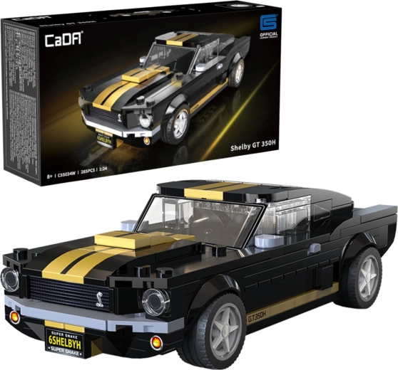 Sastavite kultni automobil iz 1966. – SHELBY GT350H u mjerilu 1:24 brenda CaDA. Set sadrži 285 dijelova, nudi realistične detalje, tiskane elemente bez naljepnica i pokretne kotače za glatko kotrljanje. Elegantna crno-zlatna izvedba i kompaktne dimenzije čine ga savršnim kolekcionarskim eksponatom i poklonom.