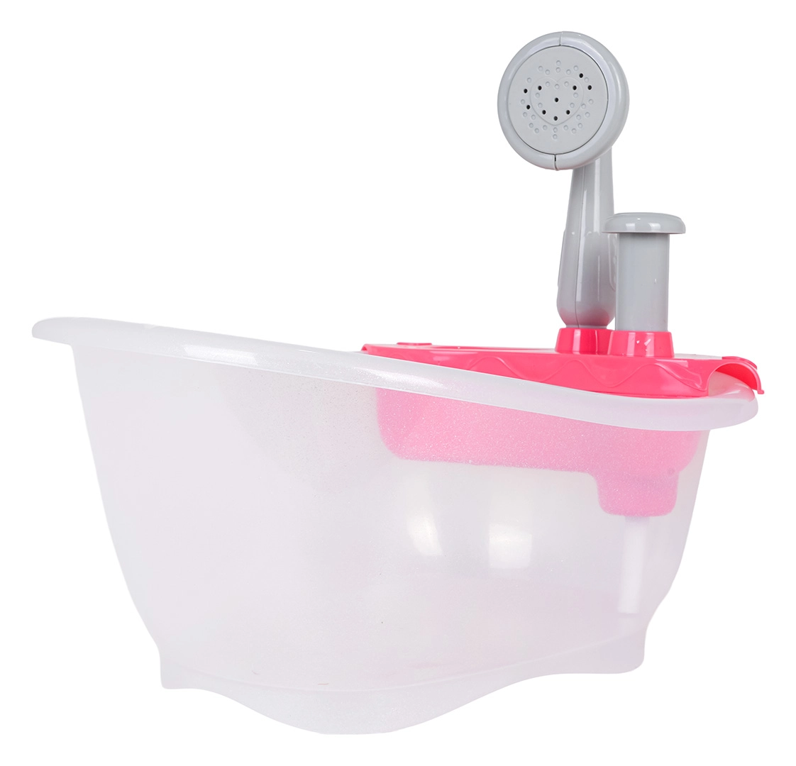 Ovaj kadić za lutke nudi djeci realističnu igru kupanja. Dovoljno je napuniti kadić vodom i pritisnuti pumpicu – iz tuša teče prava voda, što potiče maštu i razvoj fine motorike.