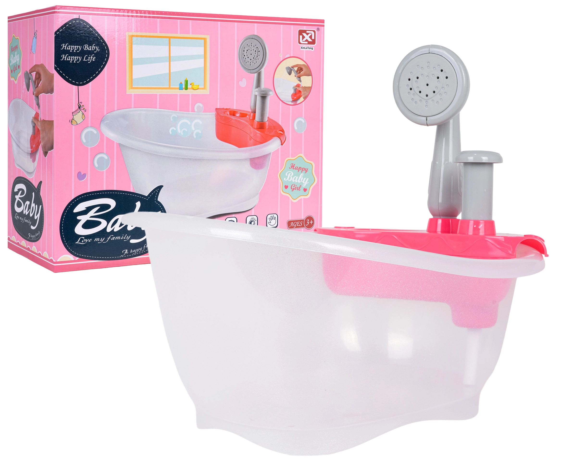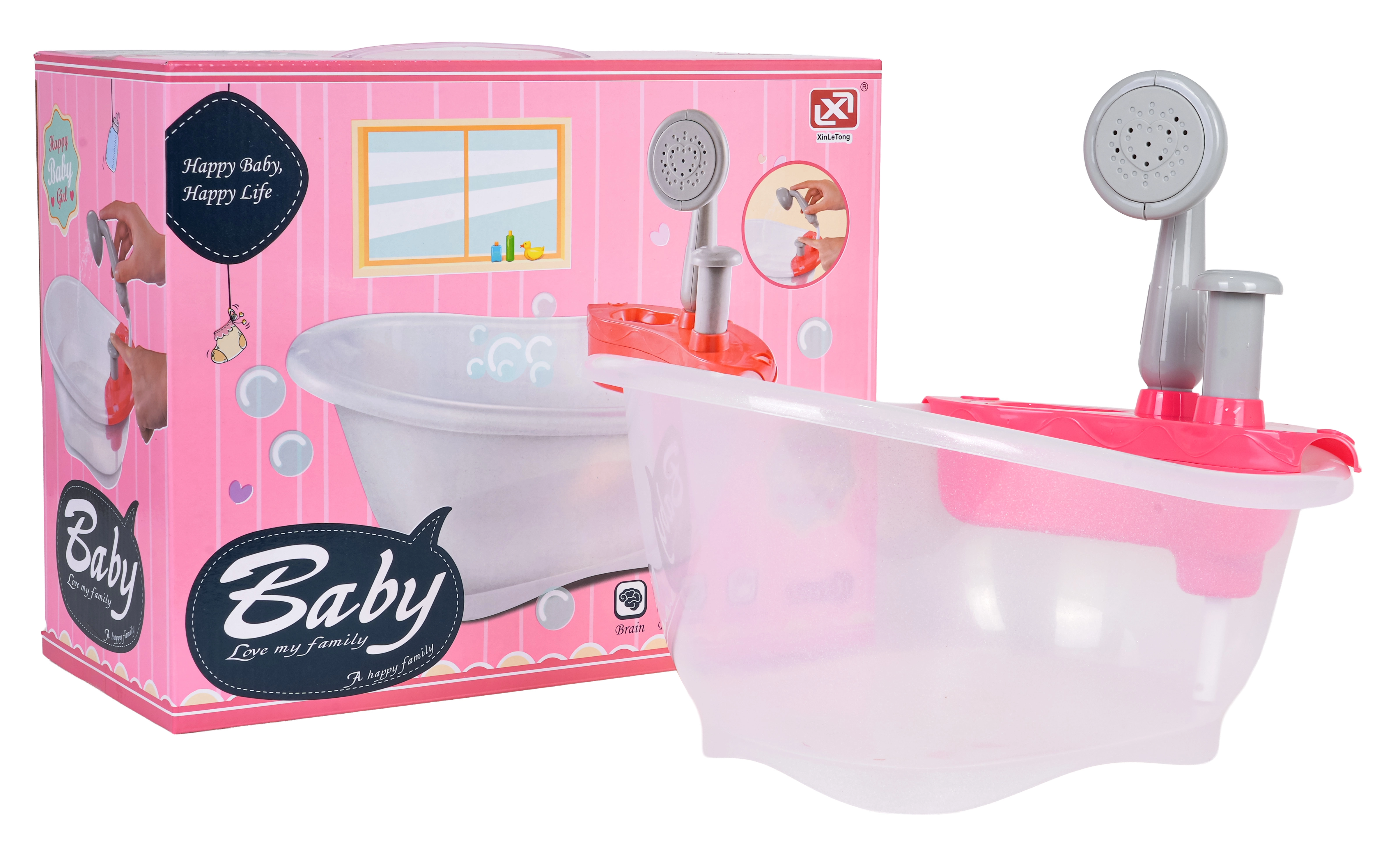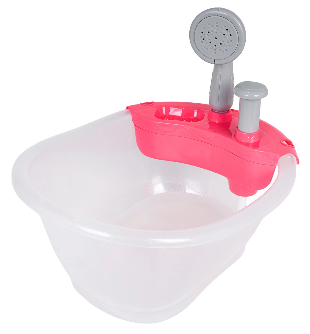 Presladak kadić za lutke s tušem razveselit će djecu od 3 godine. Nakon punjenja vodom i pritiskom na pumpicu iz tuša doista teče voda. Set je izrađen od sigurnih i kvalitetnih materijala, idealan kao poklon za male njegovateljice.