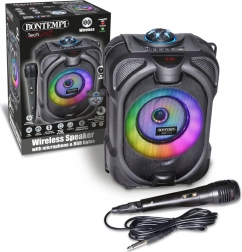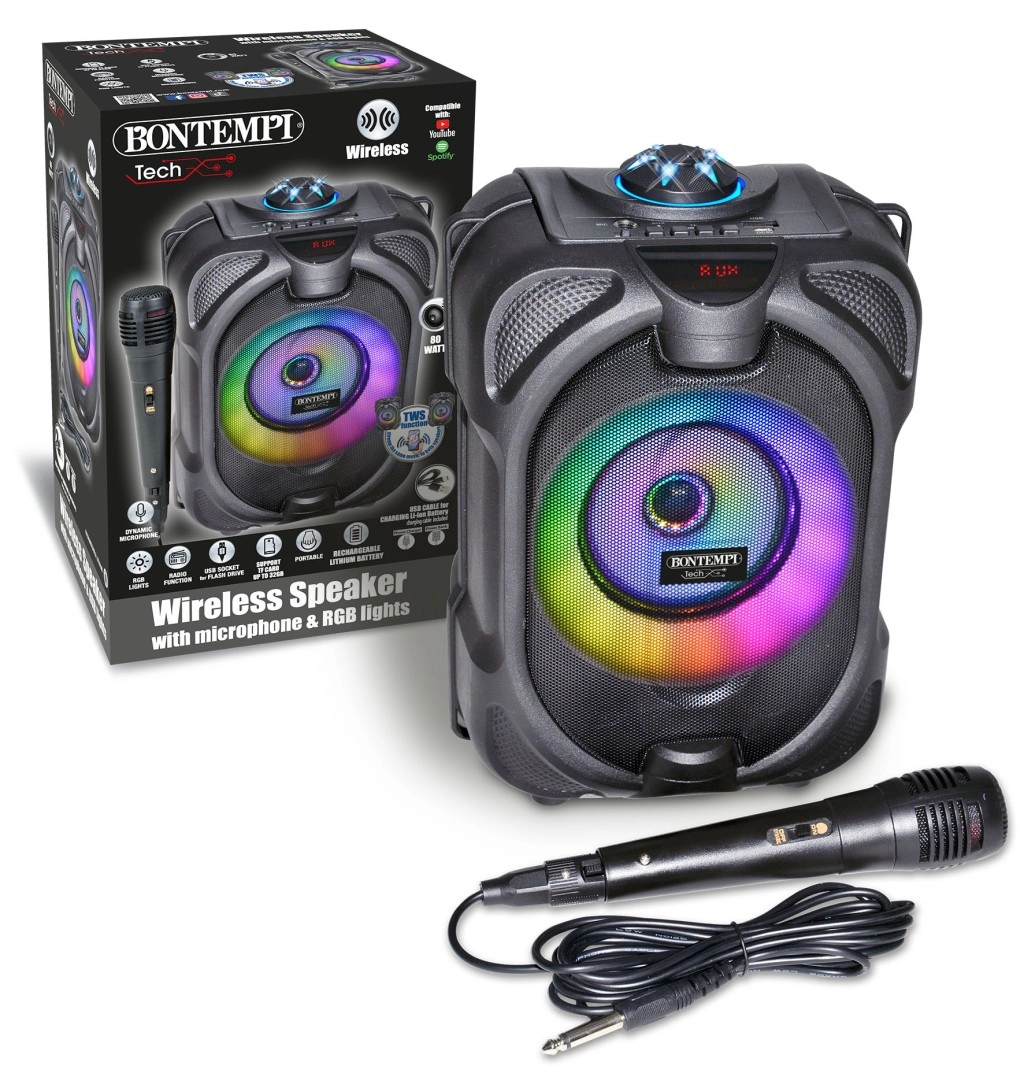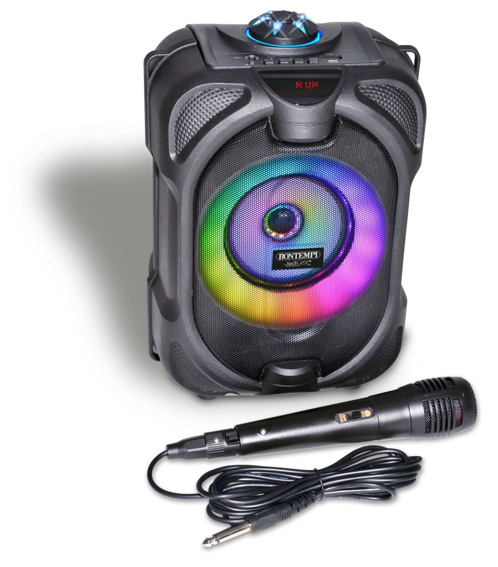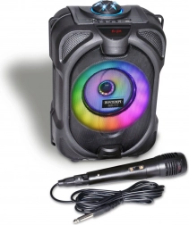 Ovaj multifunkcionalni bežični zvučnik pretvara svaku proslavu u doživljaj. Zahvaljujući dinamičkom mikrofonu idealan je za karaoke, vođenje programa i govor. Šareni LED efekti naglašavaju atmosferu, dok integrirani zaslon pregledno prikazuje način rada i informacije o reprodukciji.