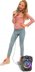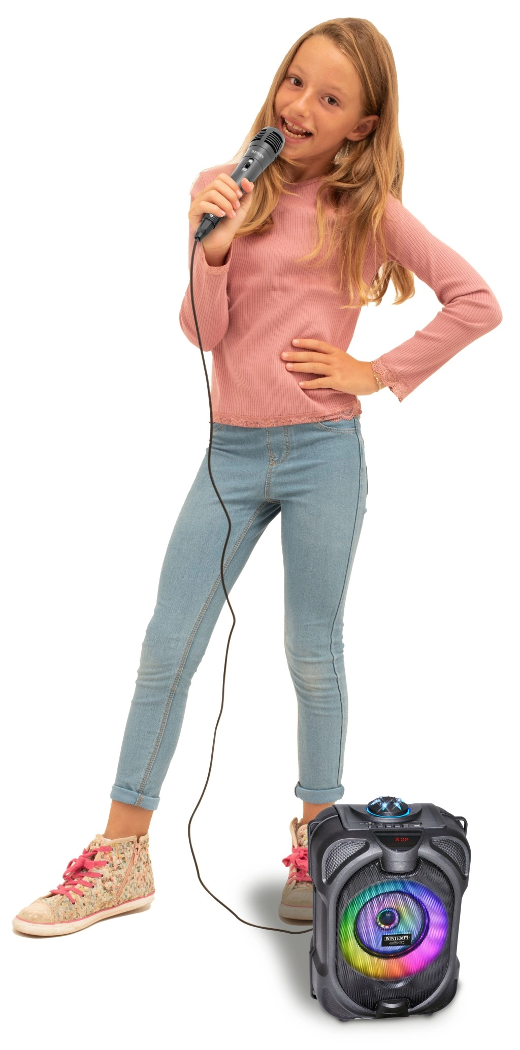 Uživajte u zabavi gdje god bili s ovim bežičnim karaoke zvučnikom s dinamičkim mikrofonom, šarenim svjetlosnim efektima i integriranim zaslonom. Jednostavno povezivanje putem Bluetootha, kvalitetan zvuk i uporaba u zatvorenom i na otvorenom čine ga savršenim izborom za obiteljske proslave, karaoke i kućnu zabavu. U pakiranju je uključen USB-C kabel za punjenje.