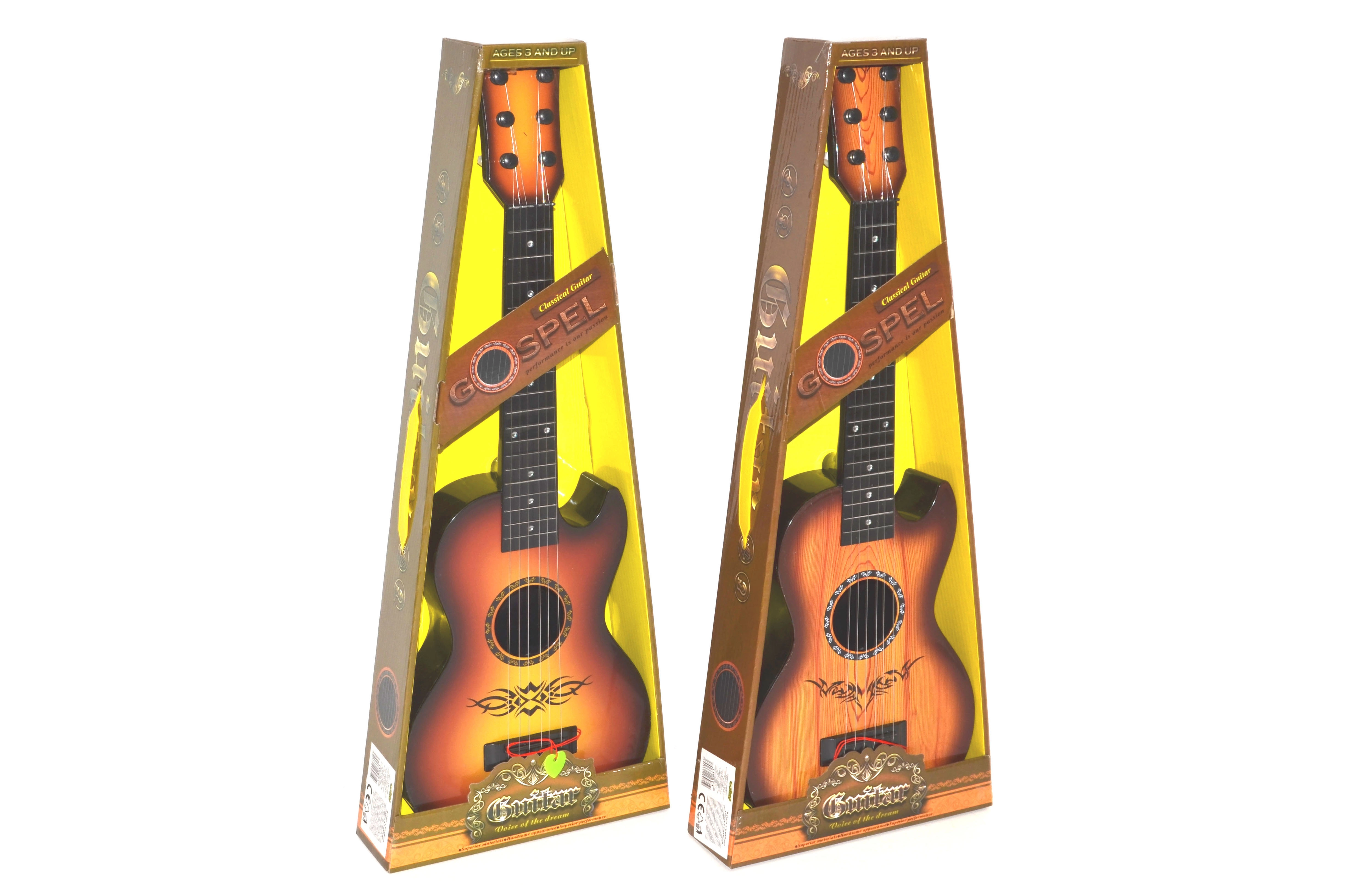 Otkrijte radost glazbe s ovom dječjom plastičnom gitarom duljine 59 cm, koja vjerno oponaša pravi instrument. Ima četiri žice, a u pakiranju je i trzalica – idealno za prve glazbene korake djece od 3 godine.
