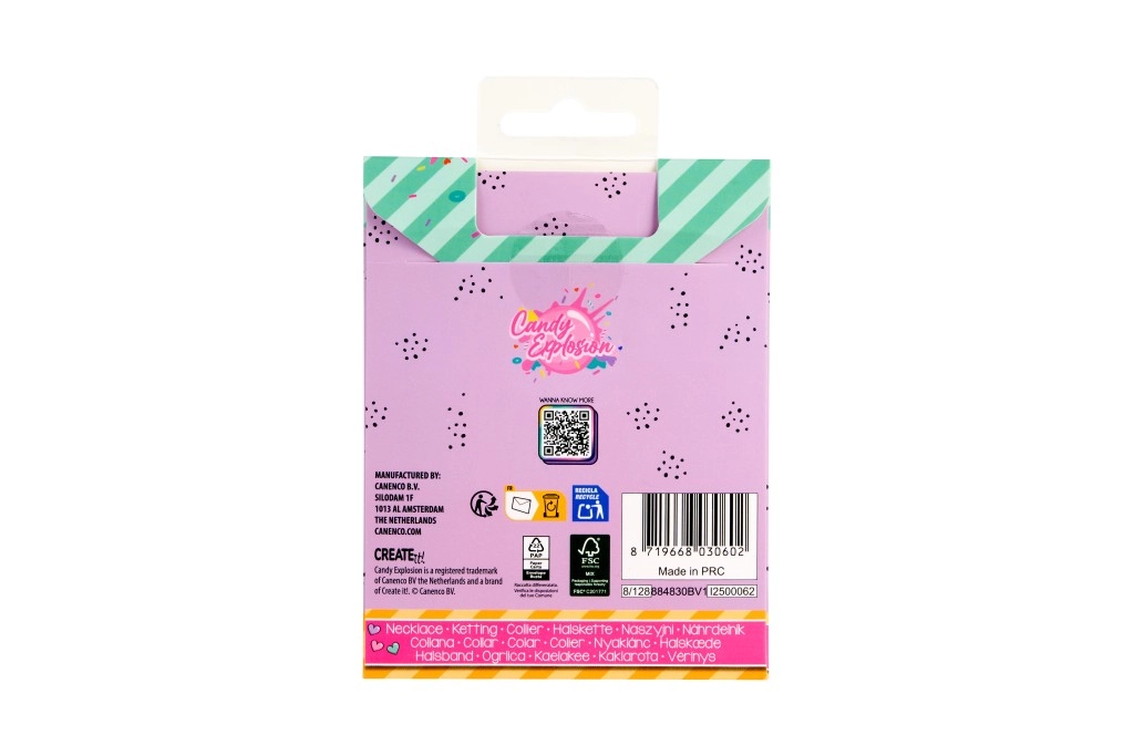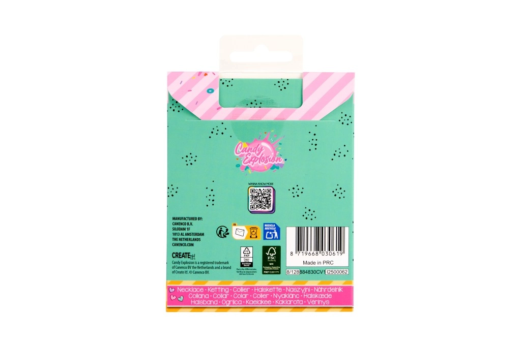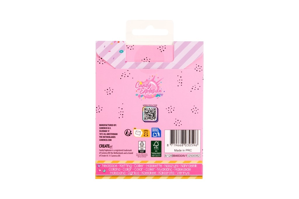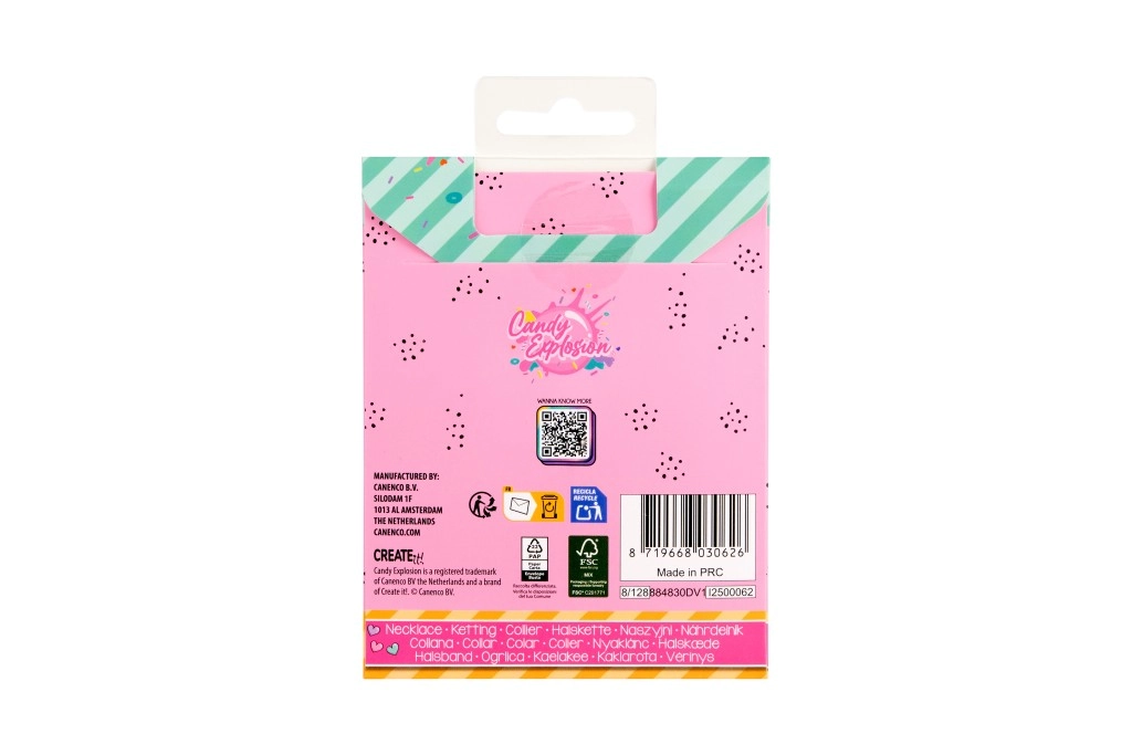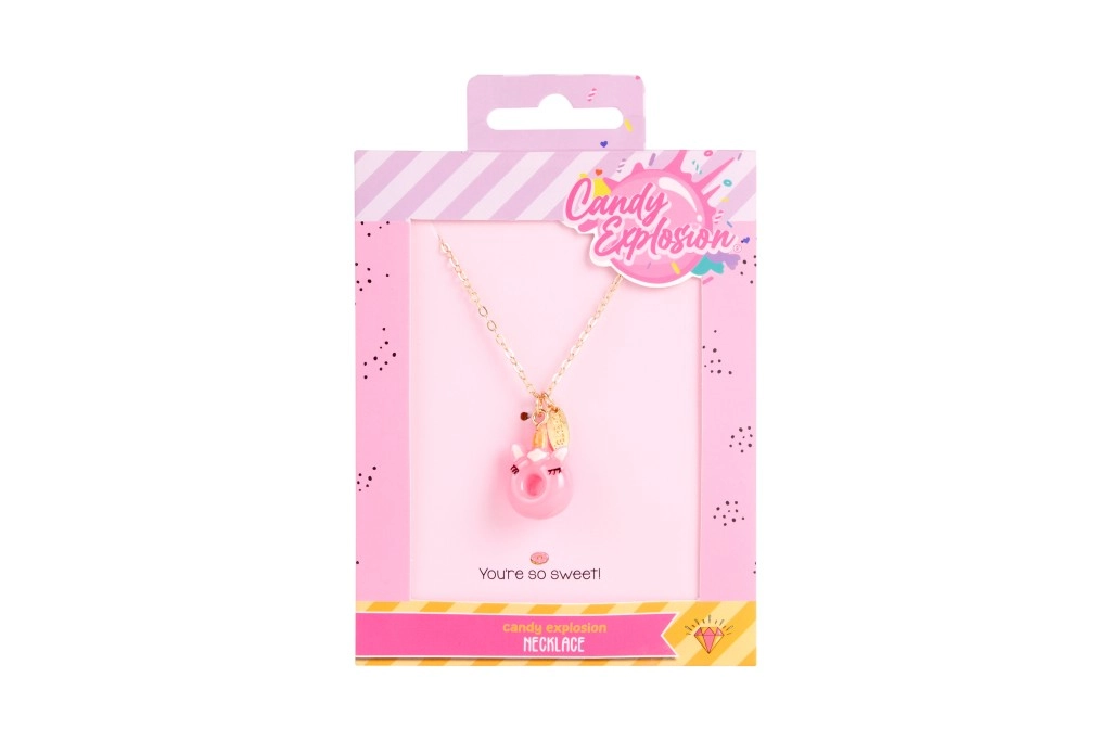 Svaka ogrlica dolazi na stiliziranoj kartici Candy Explosion s otvorom za vješanje – idealno kao mali poklon za radost.