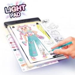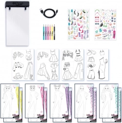 Ovaj stilski set idealan je za male ljubitelje mode koji žele dizajnirati kao pravi kreatori. Osvijetljena podloga olakšava precrtavanje i slojevito korištenje šablona, pa lijepe i čiste skice nastaju u tren oka. Zahvaljujući bogatoj opremi možete kombinirati različite siluete, dodatke i boje te stvarati jedinstvene kolekcije.