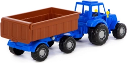 Traktor je postavljen na metalnim osovinama koje osiguravaju stabilnost i glatko kretanje. Prikolica je odvojiva i pogodna za prijevoz manjih predmeta. Kvalitetna plastika odolijeva uobičajenoj upotrebi i osigurava dug vijek trajanja igračke.