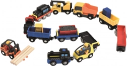 Lokomotiva s vagonima za ugljen i trupce uvodi djecu u svijet željeznice. Odvajanje i spajanje vagona potiče finu motoriku i maštovitu igru.