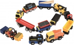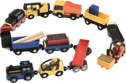 Ovaj svestrani set proširuje svaku dječju vlakovnu stazu lokomotivom, vagonima i radnim strojevima. Dijelovi se lako povezuju pomoću magnetskih spojnica i glatko voze po ravnoj podlozi i kompatibilnim tračnicama. Realistični elementi poput ukrcaja trupaca, ugljena ili prijevoza automobila potiču maštovitu, narativnu igru.