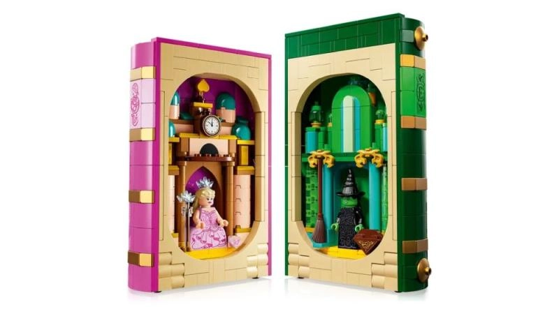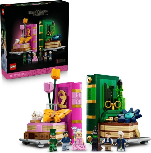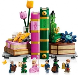 Ovaj LEGO set stvara par očaravajućih knjižnih diorama koje služe kao knjižne zaustavljaljke i kao originalna dekoracija. Ružičasto-zlatna scena nježno upućuje na Glindu s motivima tulipana i leptira, dok zeleno-zlatni dio s ključevima i smaragdnim detaljima priziva svijet Elphabe. Otvarajući i spojni elementi otkrivaju minijaturne scene za izlaganje likova i igranje priča.