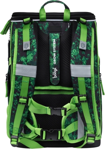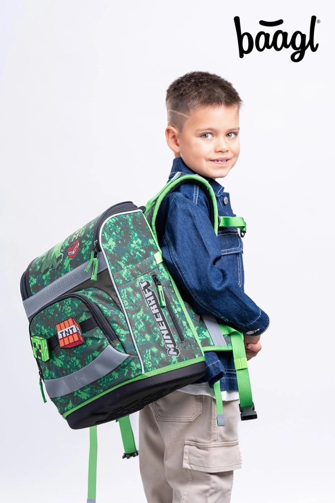 Aktovka Baagl Zippy Plus s motivom MINECRAFT Boom idealan je izbor za djecu od 1. razreda. Zahvaljujući čvrstom, ojačanom tijelu odlično drži oblik i samostalno stoji, što olakšava spremanje bilježnica i udžbenika. Pomični leđni sustav omogućuje podešavanje aktovke na tri različite veličine, pa raste zajedno s djetetom. Potpuno podesive naramenice i odvojivi lumbalni pojas osiguravaju udobno i zdravo nošenje tijekom cijelog dana.